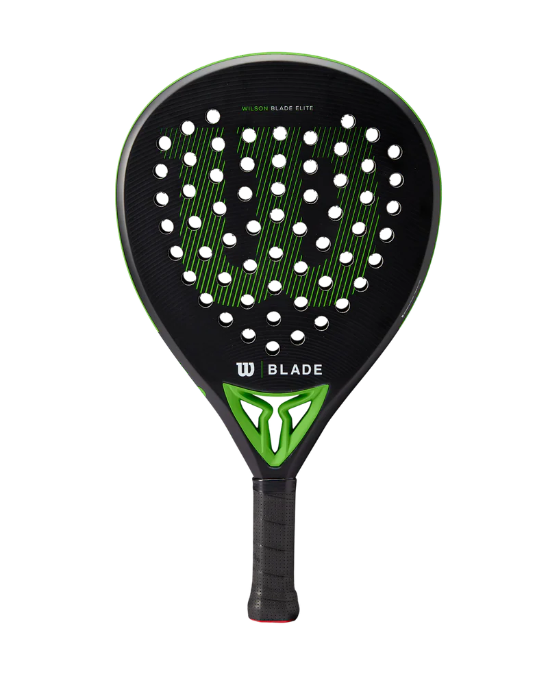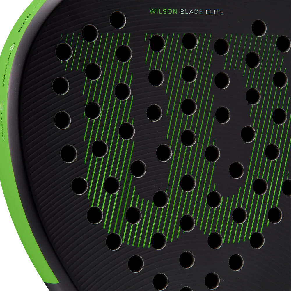 Wilson Blade Elite v2 Padel Racket, Black/Neon Green; Swing with authority when you brandish the Blade Elite v2, a paddle that brings the heat in a lightweight, responsive construction. Comprising Soft EVA Foam for a nice cushioned feel upon contact, this tear drop paddle offers an excellent blend of comfort, pace and liveliness with every stroke. Other notable features include Spin Effect Grip on the paddle surface for enhanced spin and a new throat piece for increased stability. Ideal for intermediate players looking to take their game to the next level, the Blade Elite v2 looks sharp while elevating performance.