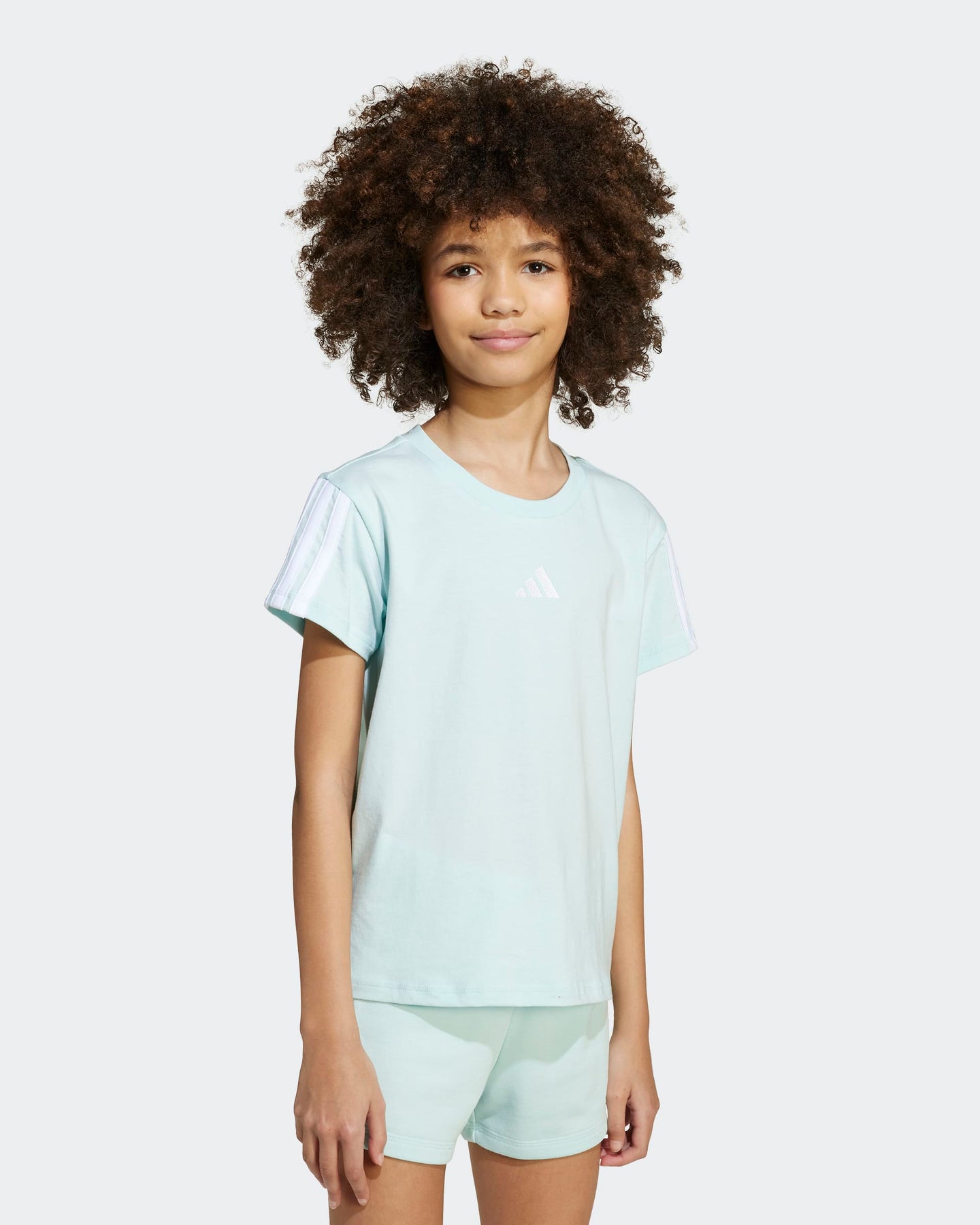 Introducing the Essentials T-Shirt for Juniors, a classic addition to any sportswear collection. Crafted from 100% knit cotton, this regular fit tee is designed with comfort in mind. The updated fit and branding add a modern touch to this staple piece, made with recycled and renewable materials for a sustainable design. Slip into this shirt and feel the adidas difference. Part of the fun of this juniors' adidas tee is how it can go from casual to dressy with just a few accessories. But don't let the versatility overshadow the pure comfort of the cotton single jersey fabric. It's a closet go-to you can count on.