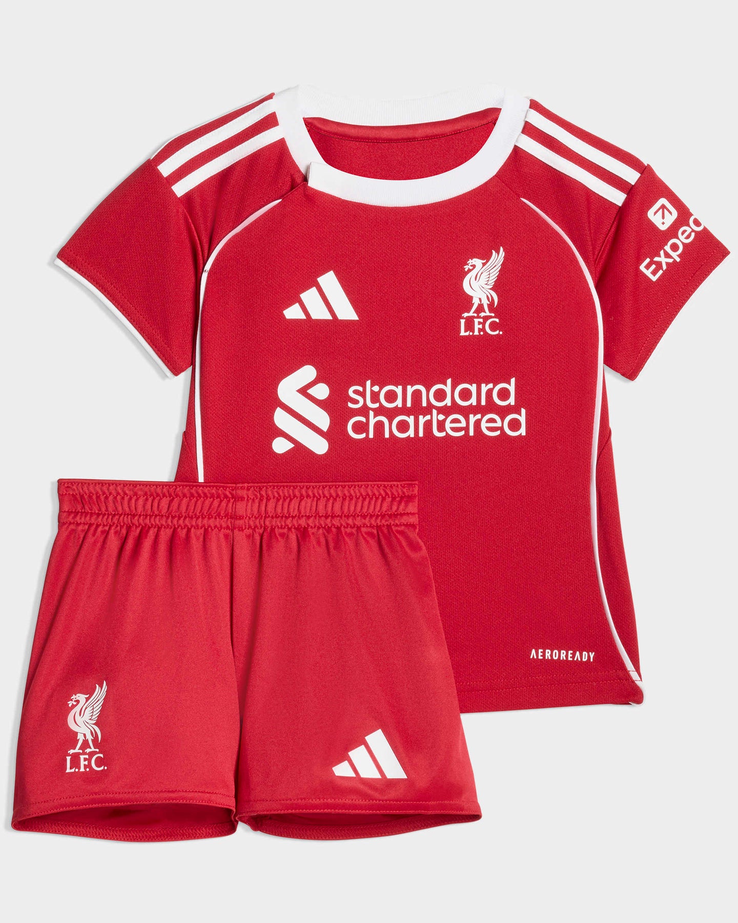 Welcome home, Reds. Liverpool FC and adidas have always been the perfect team. Kicking off their third spell together, the club's 25/26 home kit brings some real mid-'00s football vibes with a clean, crisp look and white piping on the shirt. Sized for infants, this version has a jersey with a snap closure and shorts with an elastic waist. Moisture-managing AEROREADY will keep them comfy in the colours they'll spend a lifetime loving.