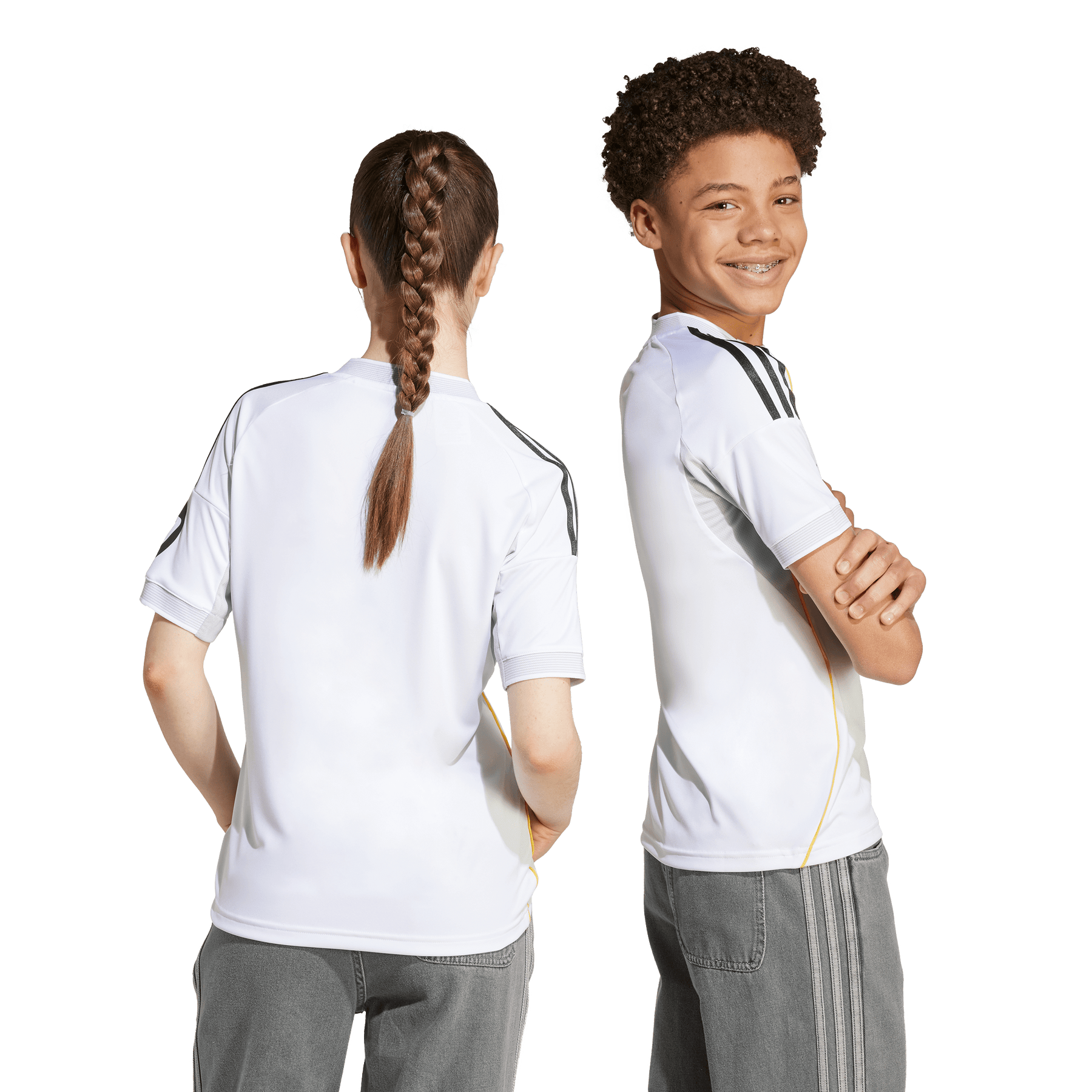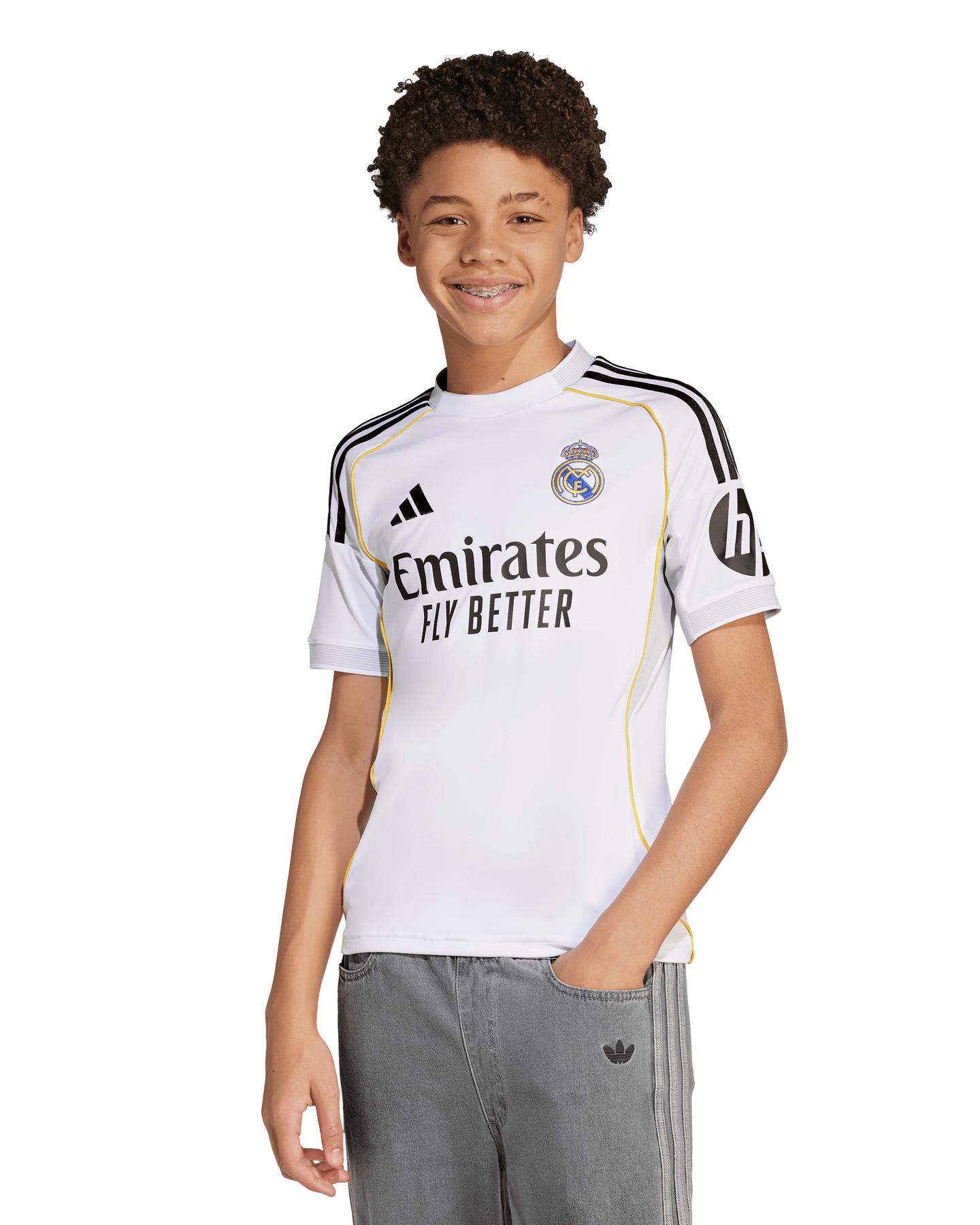 Built on firm foundations. This juniors' adidas Real Madrid home jersey marks the Bernabéu's latest refurbishment with a design featuring subtle shapes, textures and colours borrowed from its long and storied history. Created to be worn at the legendary stadium in the 25/26 season, it fields moisture-managing AEROREADY for comfortable support and an embroidered club crest for unmatched pride.