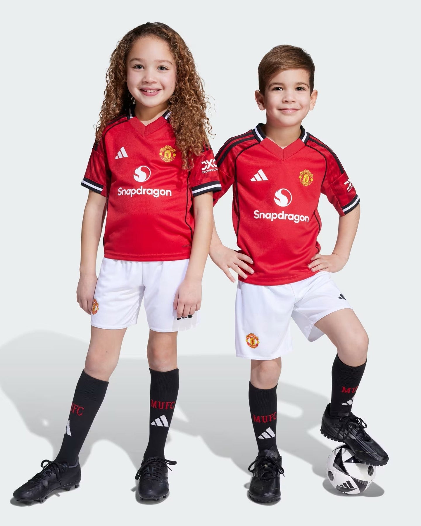 Bring the magic of Old Trafford home with this kids' Manchester United kit. A sized-down version of the club's timeless adidas home strip, it includes a jersey with a "Theatre of Dreams" back neck sign-off, and a pair of comfortable shorts. Moisture-managing AEROREADY helps keep young fans dry whether they're kicking it on the football pitch or kicking back in front of the big game.