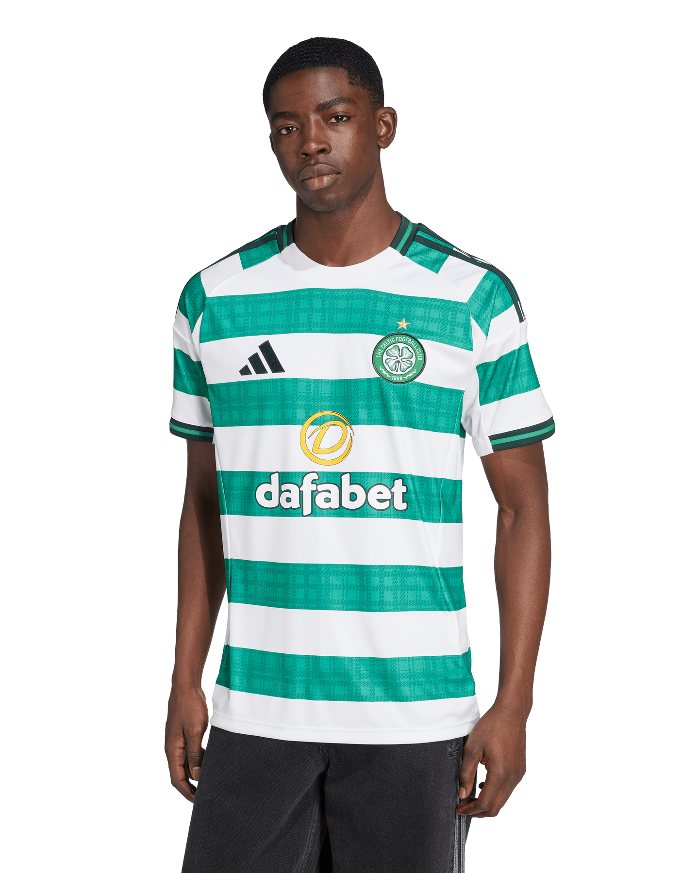 Steeped in tradition, this adidas Celtic FC home jersey shows off the club's iconic hoops. Look more closely at the green ones, though, and you'll see an extra detail inspired by Celtic tartan. Behind this football shirt's standout look, moisture-managing AEROREADY helps keep you dry and comfortable whether you're on the pitch, in the stands or watching the big game from home.