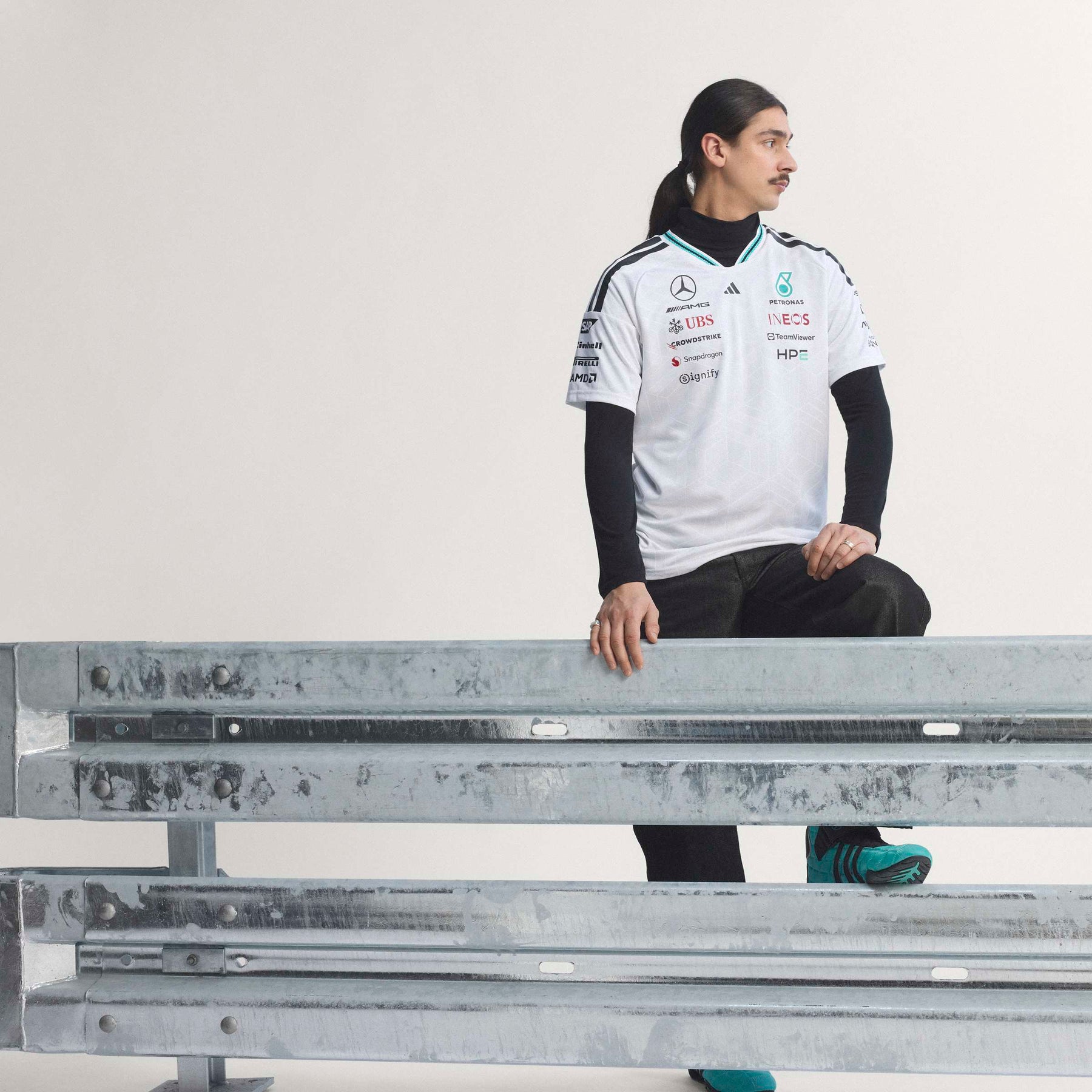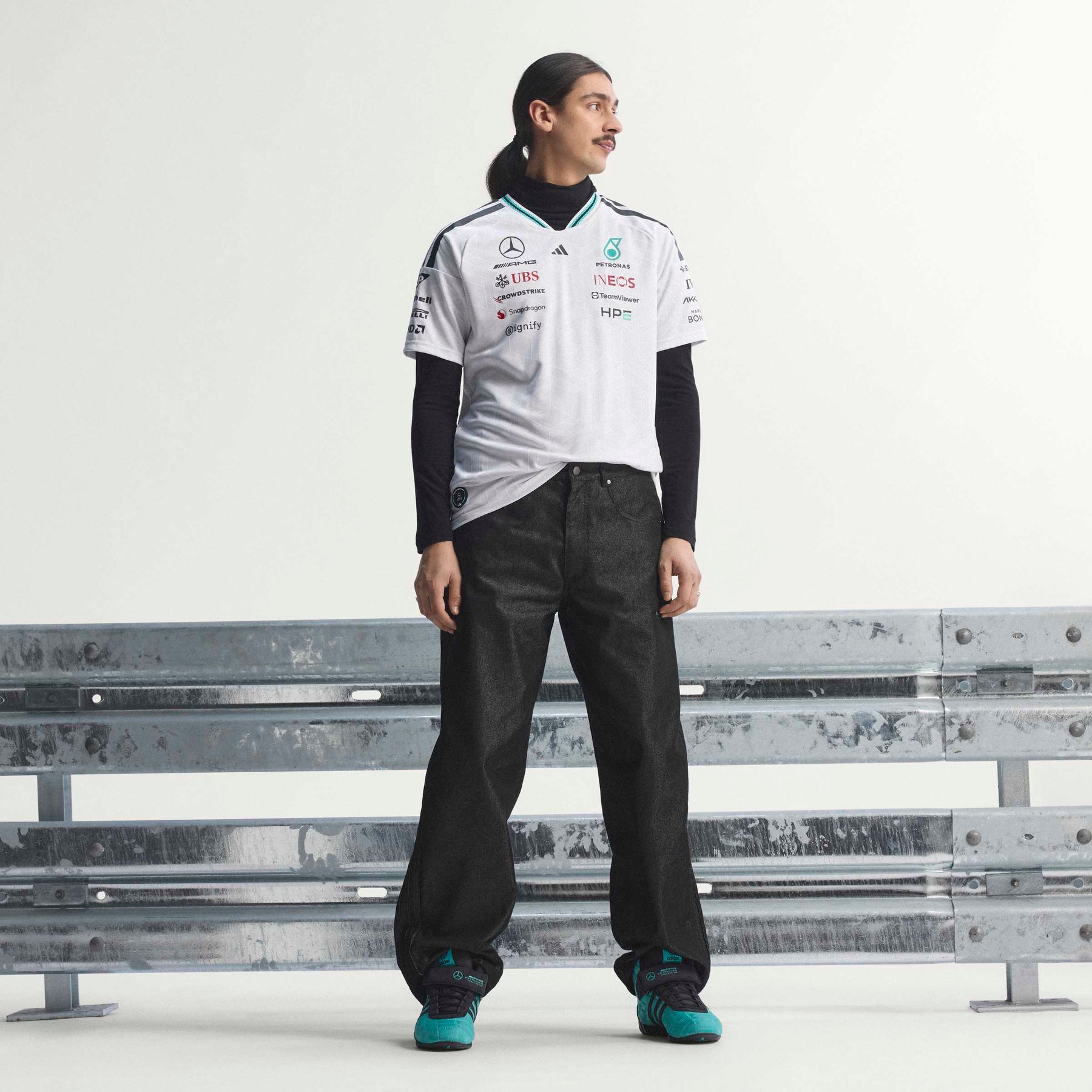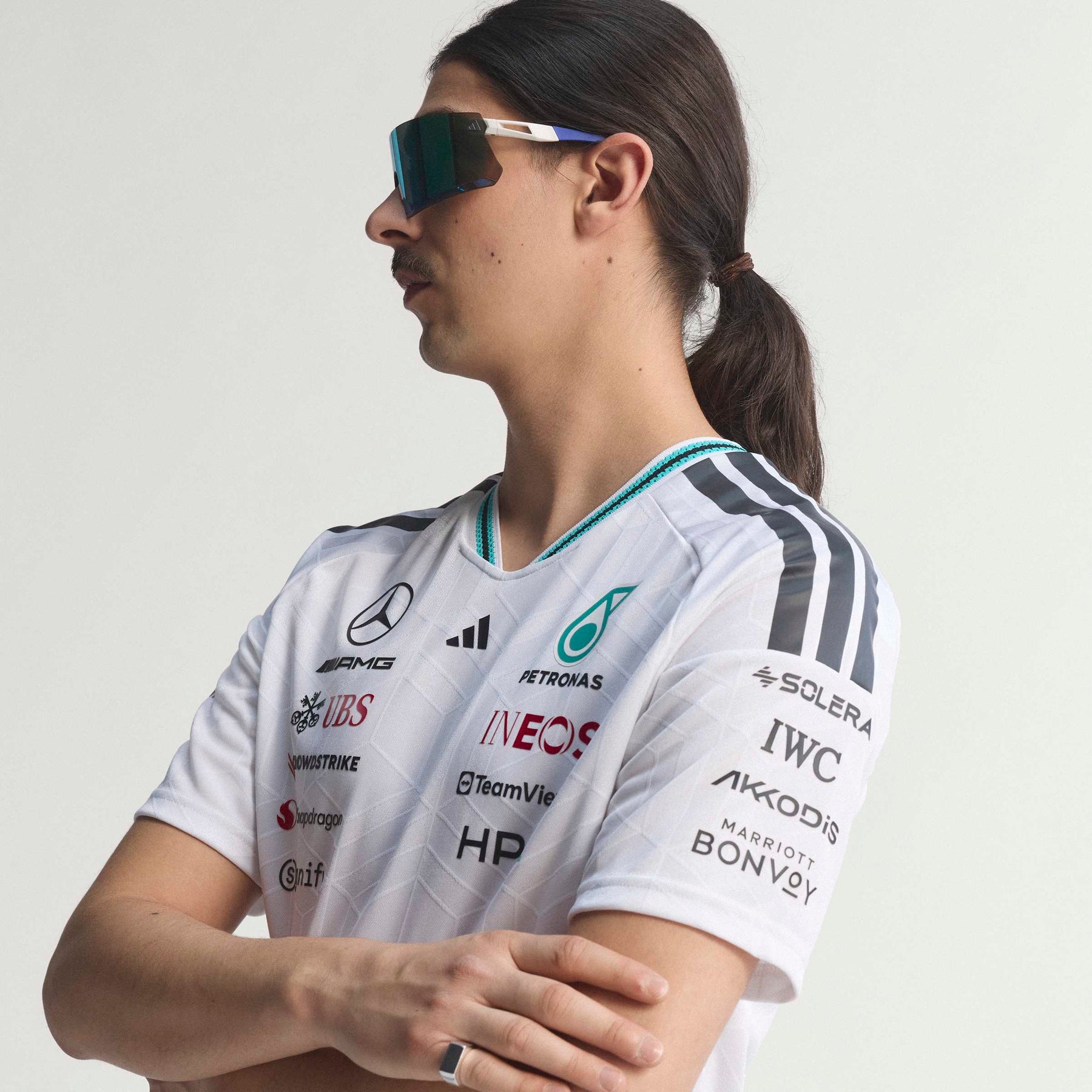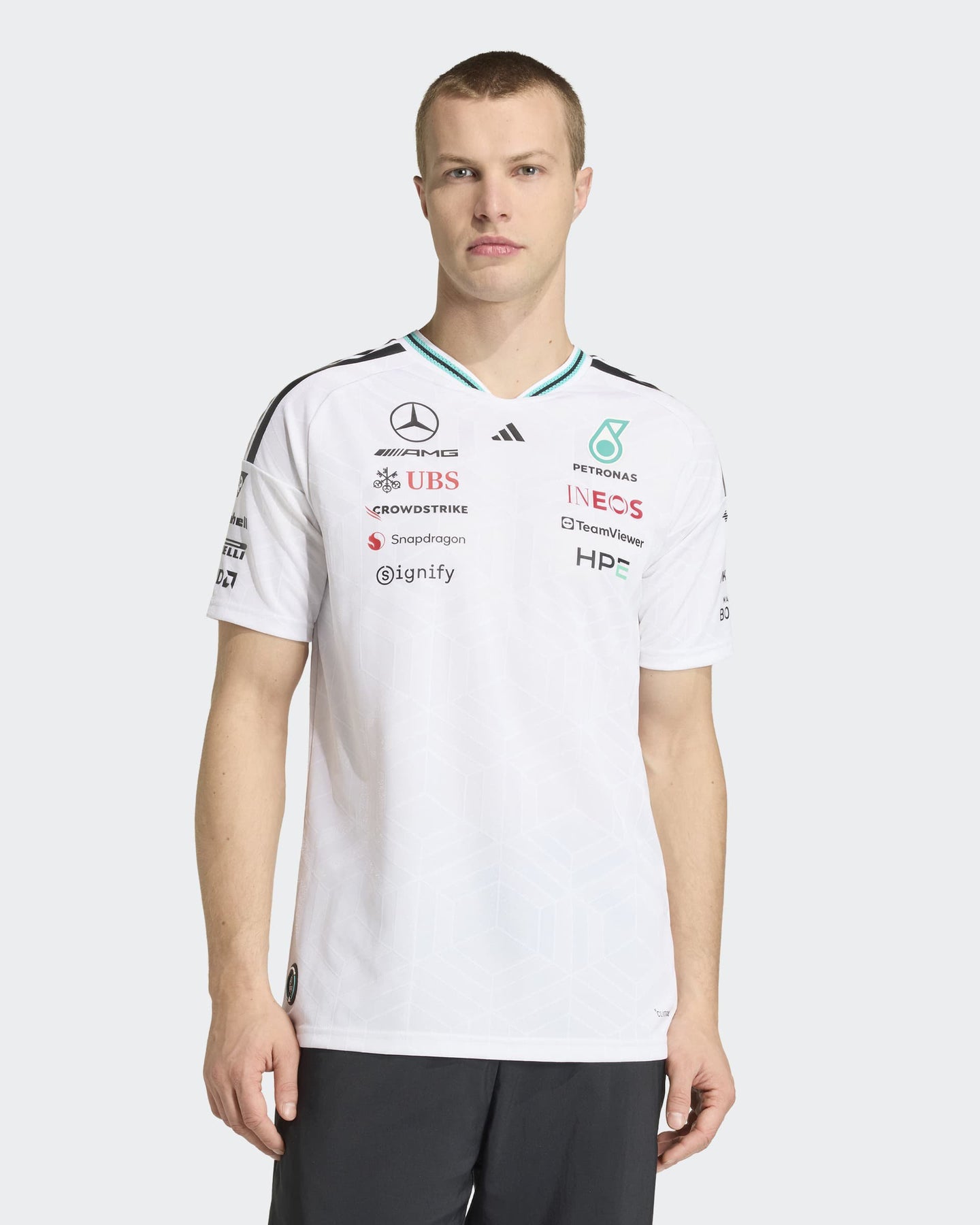 Adorned with the iconic adidas logo and the Mercedes - AMG Petronas F1 Team branding, this jersey is a tribute to performance and excellence. Whether you're trackside or wearing it casually, the authentic jersey makes a bold statement. Embrace the spirit of racing and the confidence that comes with wearing gear designed for champions. The Mercedes - AMG Petronas Formula 1 Team Driver Authentic Jersey is made for those who live life in the fast lane. This jersey combines sleek design with cutting-edge technology for standout comfort, whether you're on the track or cheering from the stands.
