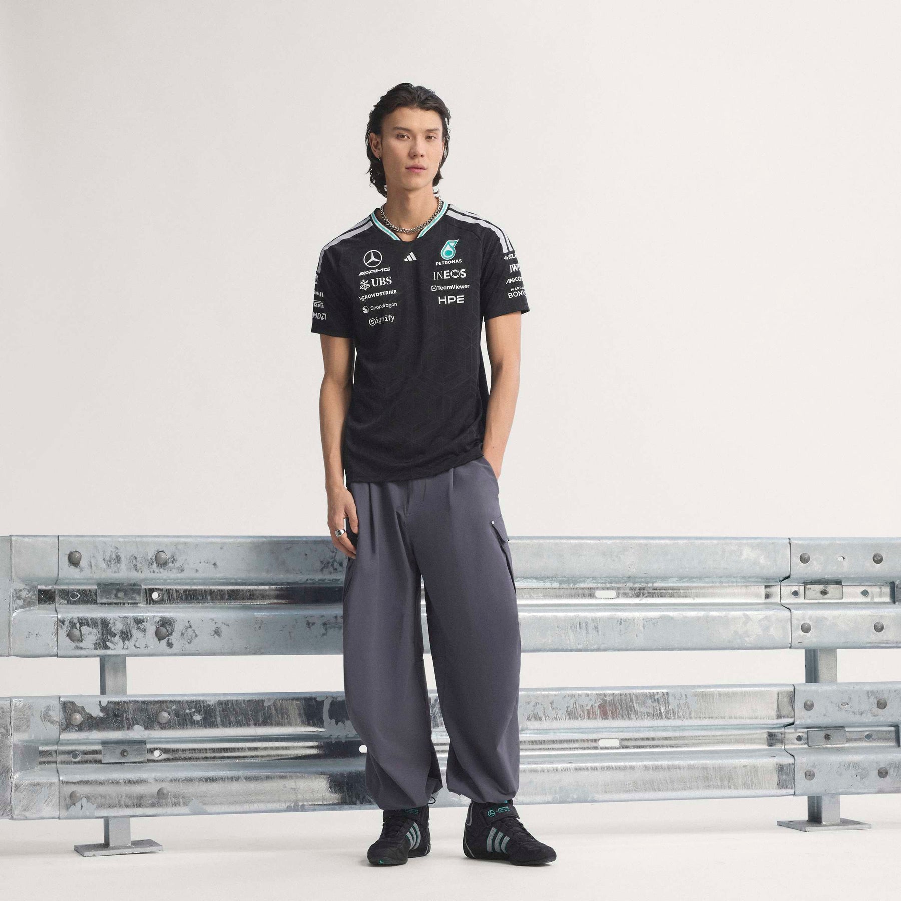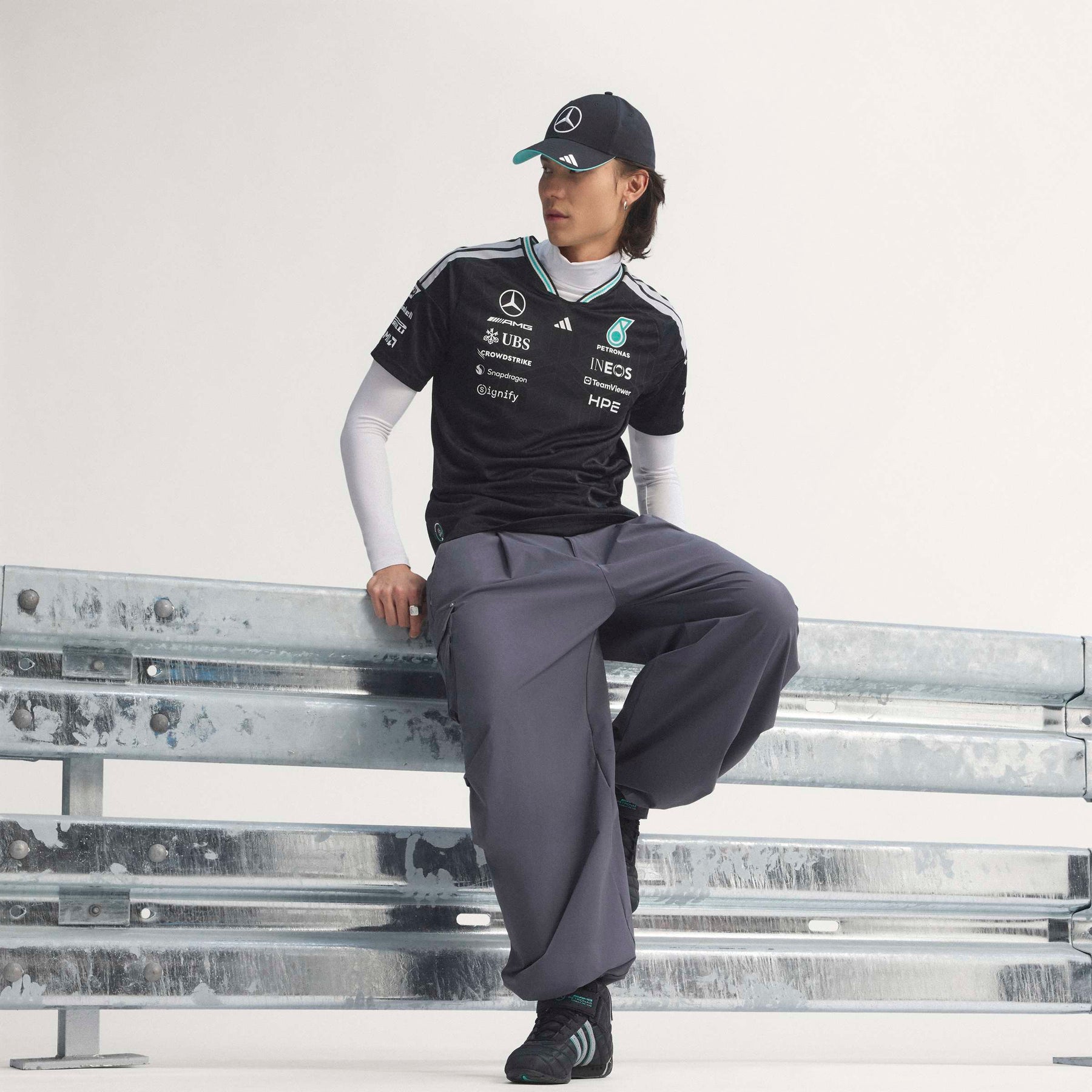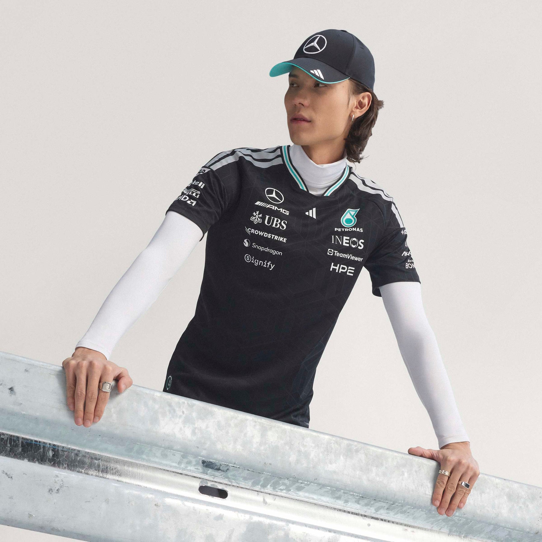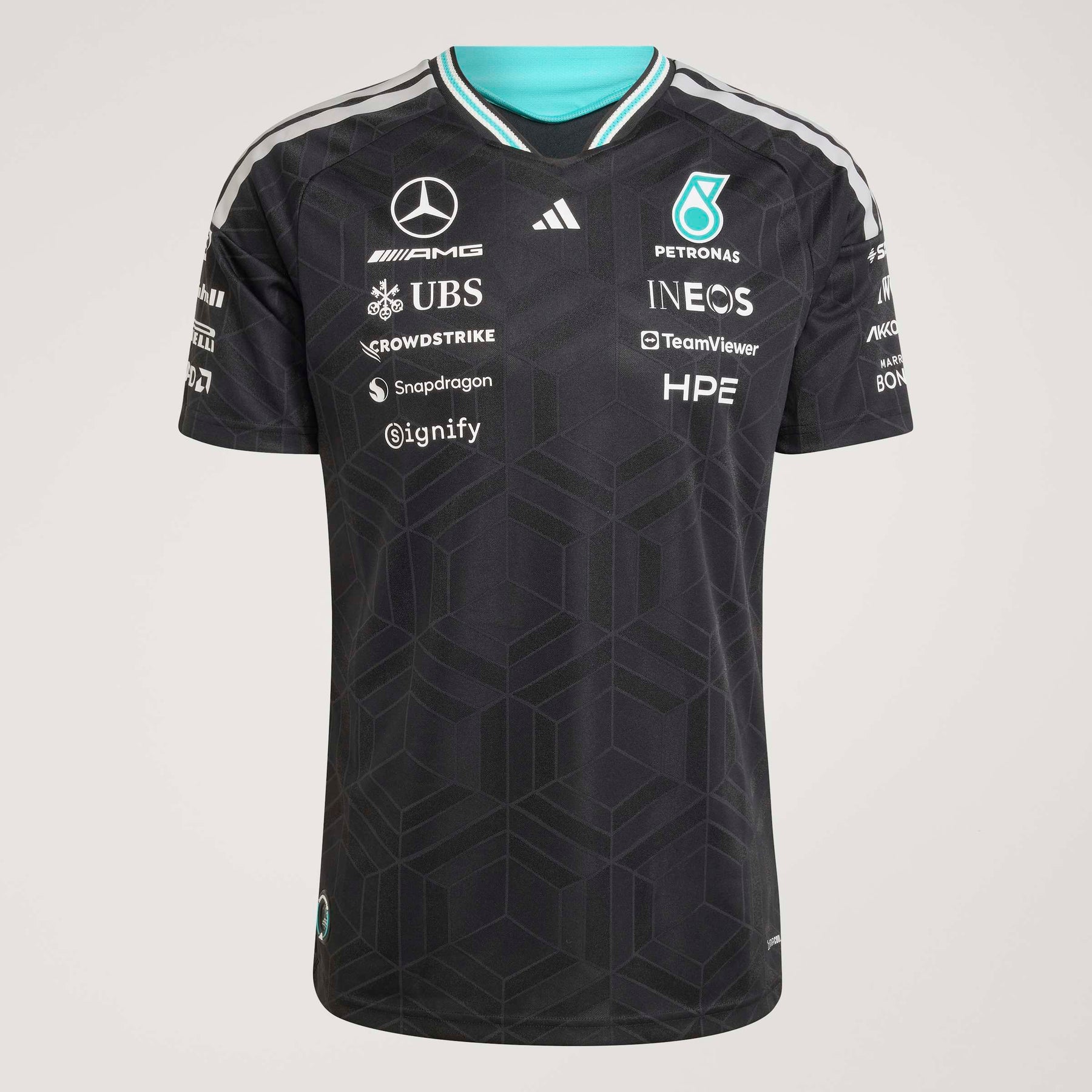 Adorned with the iconic adidas logo and the Mercedes - AMG Petronas F1 Team branding, this jersey is a tribute to performance and excellence. Whether you're trackside or wearing it casually, the authentic jersey makes a bold statement. Embrace the spirit of racing and the confidence that comes with wearing gear designed for champions. The Mercedes - AMG Petronas Formula 1 Team Driver Authentic Jersey is made for those who live life in the fast lane. This jersey combines sleek design with cutting-edge technology for standout comfort, whether you're on the track or cheering from the stands.