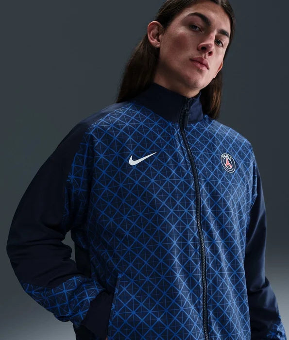 With design details specifically tailored for football's rising stars, this Paris Saint-Germain jacket pairs a loose fit with sweat-wicking tech to help keep you cool and composed while you fine-tune your skills.