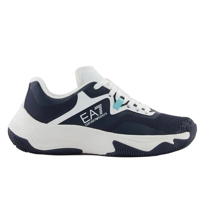 New technical tennis shoes for hard surfaces, including Padel courts. These sneakers feature contrasting details and the iconic EA7 logo making them instantly recognisable: a style that offers both performance and stability while adding a rugged touch to any look.