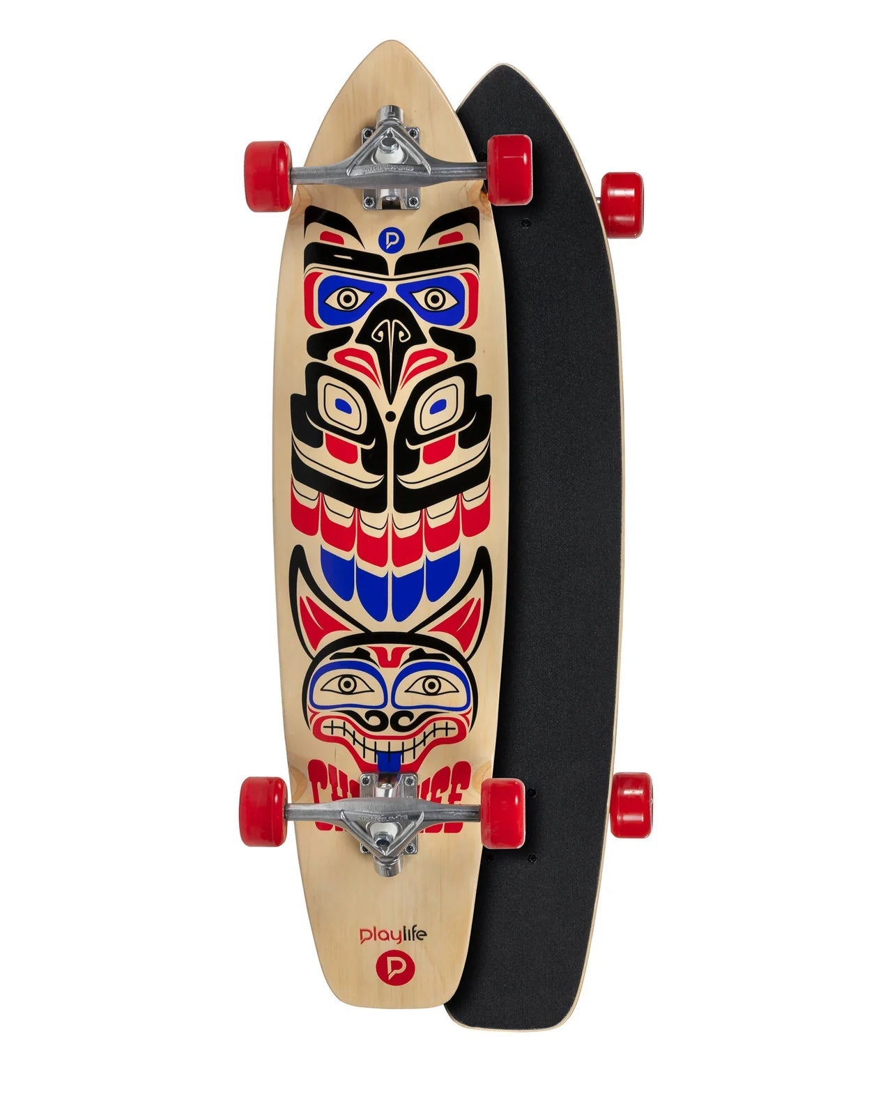 The Playlife Cherokee longboard offers the perfect combination of rolling and carving around your urban playground. This board with its classic cruiser board shape made out of 9 plies Russian maple has great flex and extra "pop" to help you to accelerate with each push. The high-standard cast trucks have the perfect geometry to make carving and steering easy. Super-high rebound bushings in 90A contribute to the overall great performance of this board. Powered with Fast and long-lasting ABEC 9 bearings and super high rebound cast soft and smooth 64mm wheels in 78A hardness you will feel like riding on clouds. Enjoy your ride with every push you make.