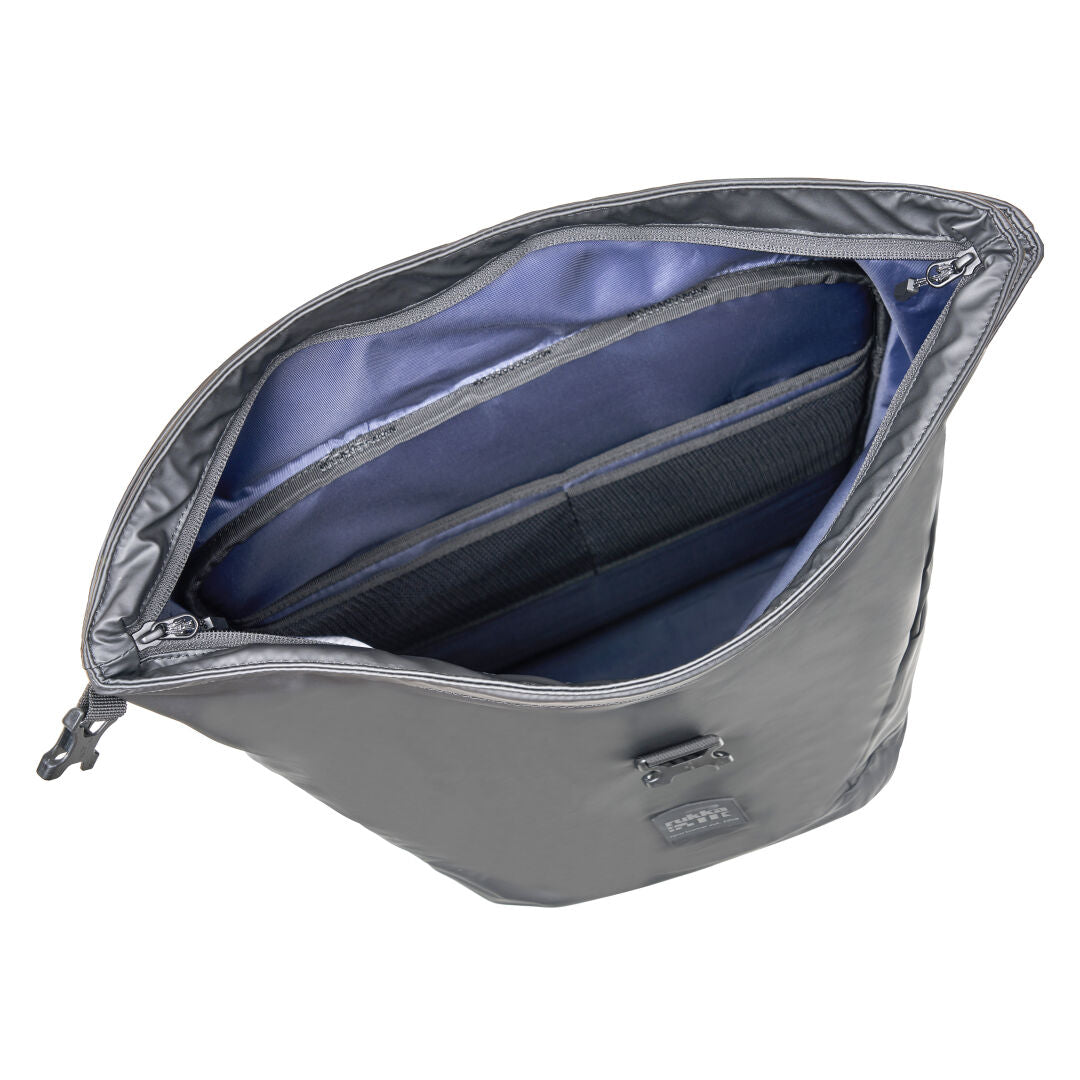 Rukka backpack. Zip closure. Roll-top closure. Side pockets. Padded and adjustable shoulder straps. Padded back panel. Chest strap. Two large internal mesh pockets. Logo label. The garment includes reflective elements. Please note that this product is not a reflector and cannot replace a reflective vest or reflective clothing. Always wear a separate reflector when moving in the dark. 10,000 mm water column. This product contains recycled materials, reducing its impact on the environment. Dimensions: H: 48 cm, W: 30/45 cm, D: 17 cm. Volume: 28 L, expanded H: 60 cm, Volume: 30 L.