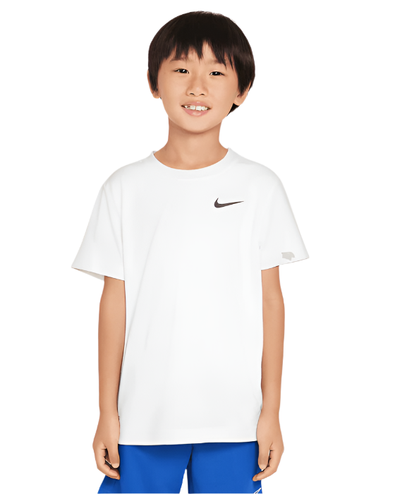 This performance tee is a timeless short sleeve silhouette made of poly jersey knit fabric enhanced with moisture-wicking, quick-drying Dri-FIT technology to help kids stay cool and dry when they get active.
