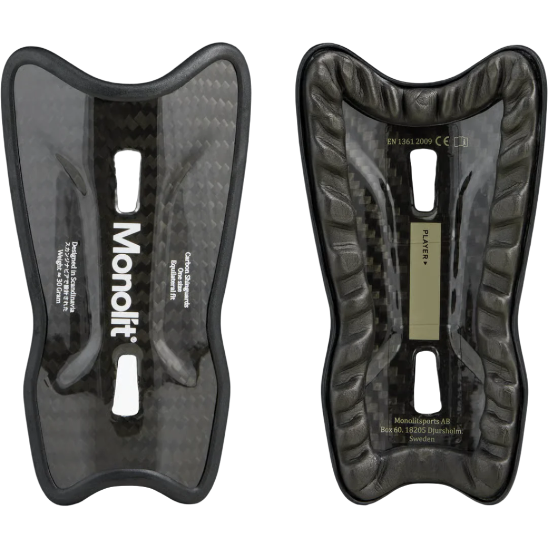Monolit Carbon 12 cm is a pair of featherlight football shin guards. With its unique carbon fiber composite construction, it is one of the lightest shin guards on the market.