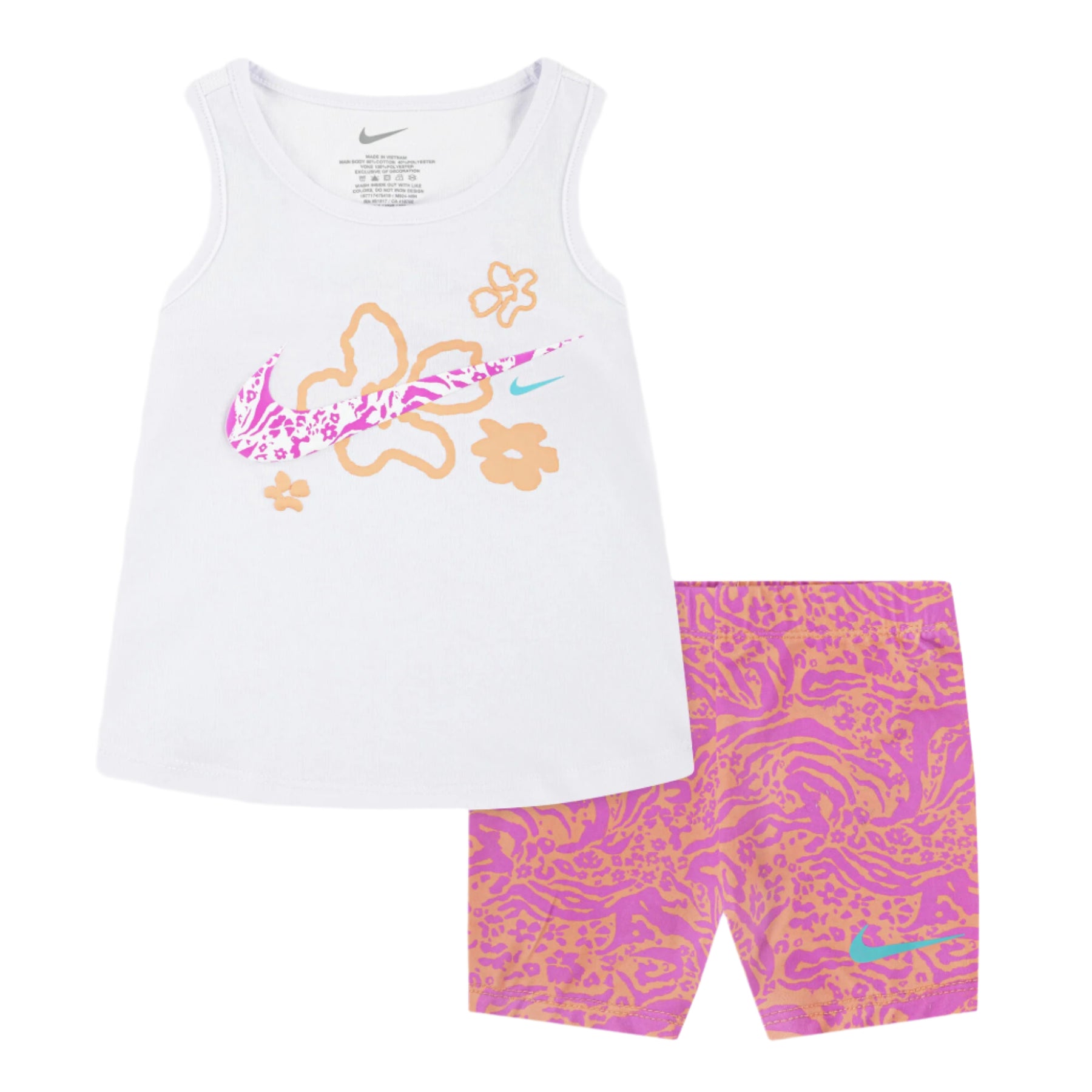 The Kids' Wild Flower Tank Top and Bike Shorts Set by Nike brings playful style and everyday comfort together. With a bright floral graphic and stretchy printed shorts, it's perfect for warm-weather adventures.