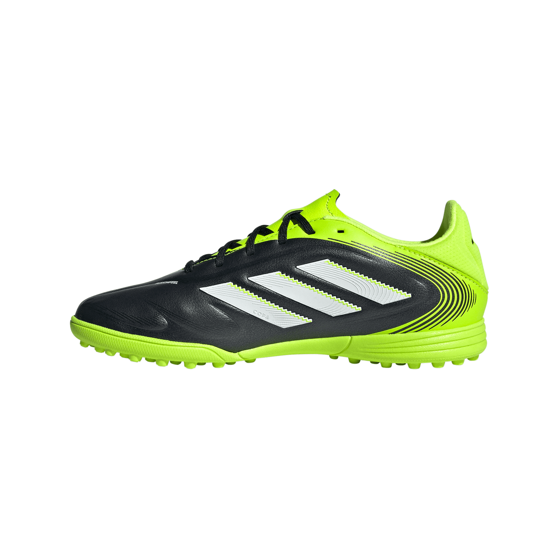 Every deft touch. Every exquisite pass. Piece together your perfect game with Copa Pure 3 boots for a flawless connection with the ball every time. These juniors' adidas League boots have a synthetic Fusionfeel upper that looks and feels like leather. On its forefoot, a 3D print adds assurance to every touch. Underneath, a lug rubber outsole delivers elegant football on artificial turf.