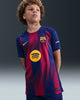 F.C. Barcelona's 2025/26 home shirt updates one of the most recognisable looks in football. Their iconic Blaugrana is fused with movement-inspired graphics and bright, energetic accents to celebrate their fans' unity and devotion to the club.