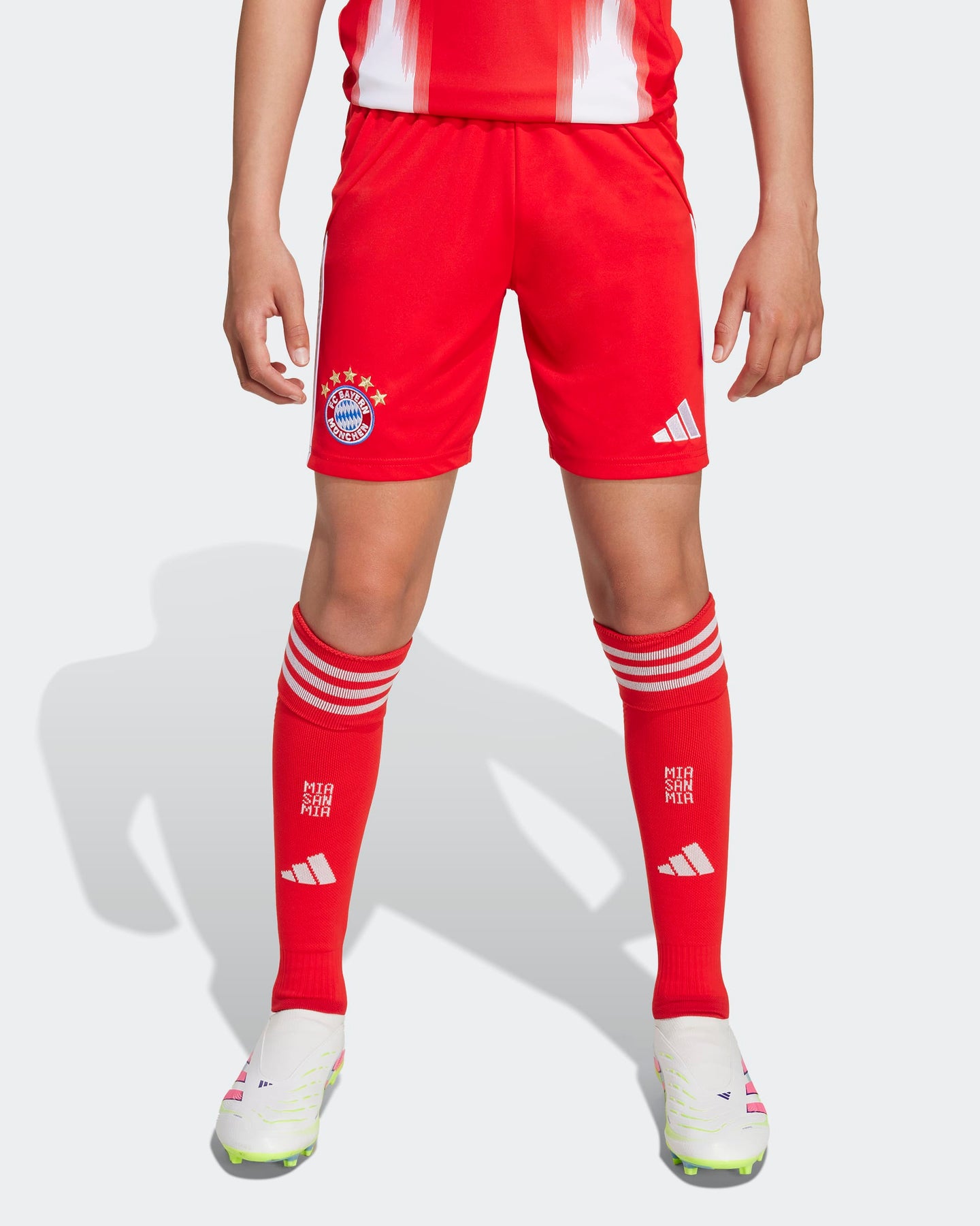 Part of an eye-catching kit that pays tribute to FC Bayern's famous home city. These juniors' adidas football shorts were created with moisture-managing AEROREADY to keep the Bavarian club's fans comfortable. Standing out above the hem, an embroidered club crest displays your allegiance.