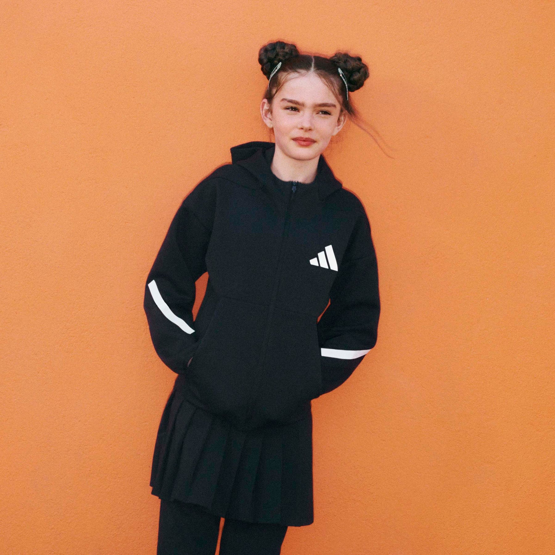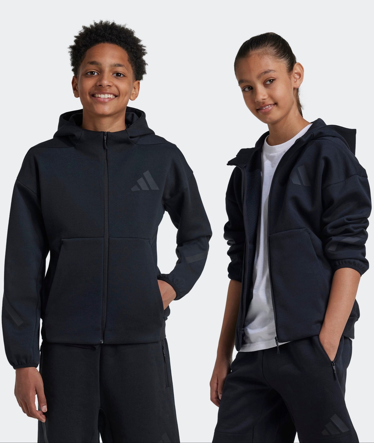 Introducing the Z.N.E. Full Zip Hoodie, a unisex piece that transcends sports. Made with a sustainable blend of 57% recycled Polyethylene Terephthalate and 43% Better Cotton, this regular fit hooded track top is a testament to adidas' commitment to the environment. The 330g doubleknit spacer fabric, constructed with three layers, blocks out the cold while the matte rubber print three-bar logo adds a touch of style. Tech-inspired drawcords and zippers complete the look, making this hoodie a perfect companion for those seeking connection and community through sport. Even the coldest days can't stop you from enjoying the game. This juniors' adidas track jacket makes it easy to support your team no matter the weather thanks to cosy, three-layer adidas PRIMEKNIT fabric and a full-coverage hood. Matte rubber-print graphics inspired by field-of-play lines honour the spirit of sport and camaraderie.By choosing recycled, we are able to reuse materials that have already been created, which helps to reduce waste. Renewable materials choices will help us to remove our reliance on finite resources. Our products made with a blend of recycled and renewable materials feature at least 70% total of these materials. A juniors' jacket made in part with a blend of recycled and renewable materials. Centre front full zip.
