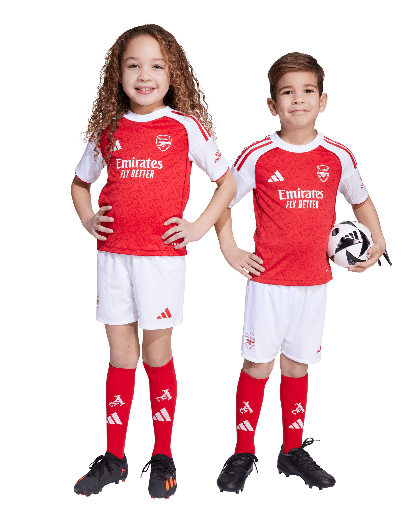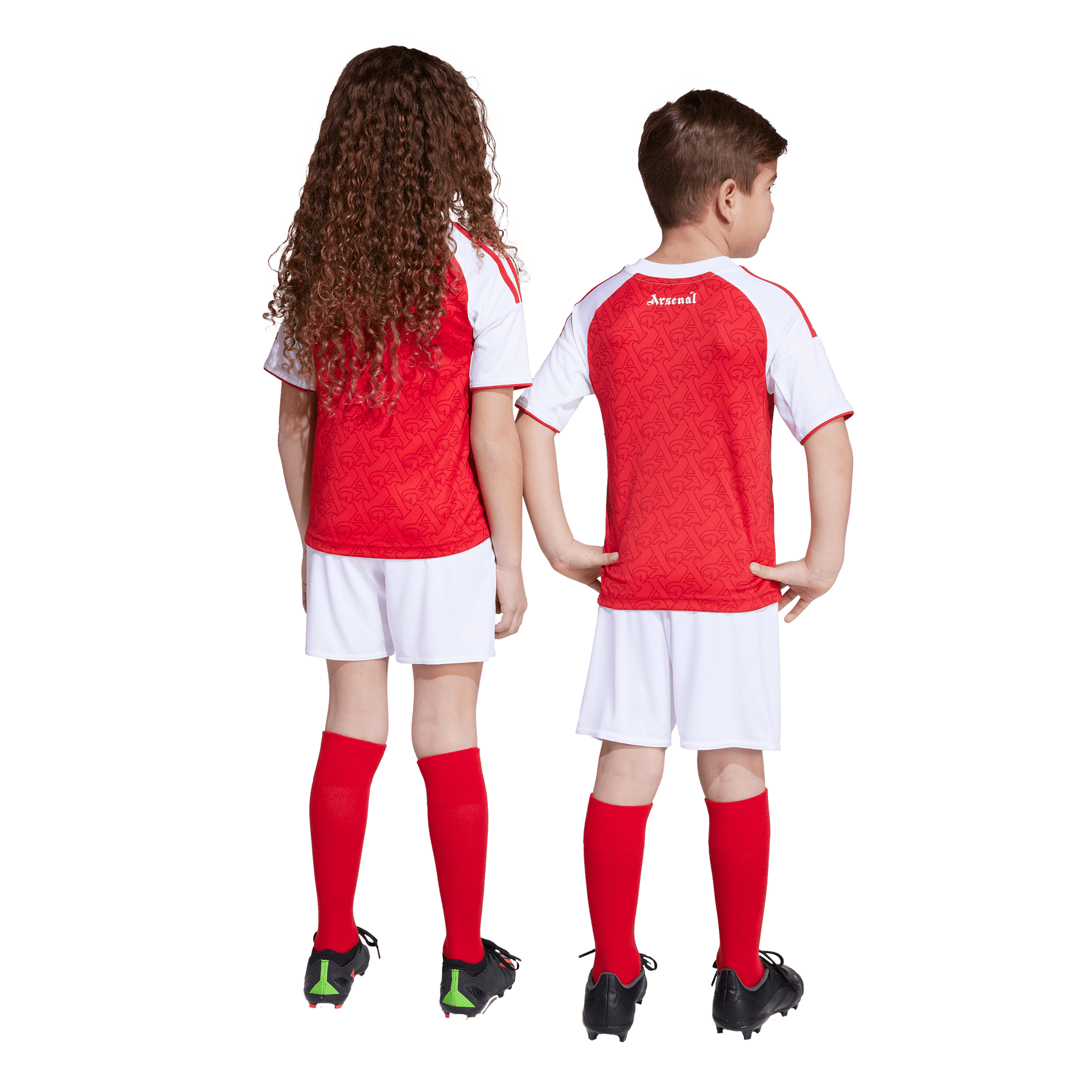 Red body. White sleeves. White shorts. So far, so timeless. Look closely at this kids' Arsenal home kit from adidas, though, and you'll see club DNA flows beyond the colours. Gothic-style A's from a vintage team badge repeat across the jersey, and a pair of heat-applied club crests complete the look. Moisture-managing AEROREADY will keep your young fan comfortable through fast football and frenetic support.