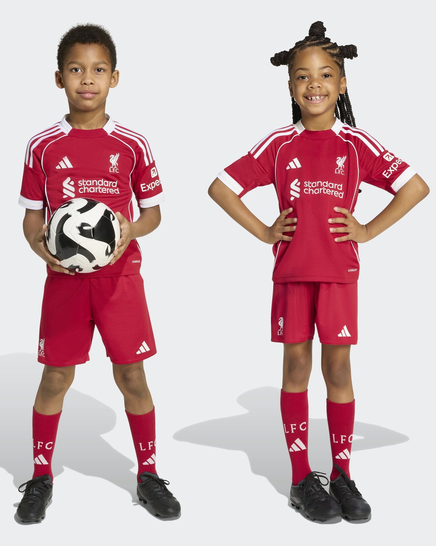 Welcome home, Reds. Liverpool FC and adidas have always been the perfect team. Kicking off their third spell together, the club's 25/26 home kit brings some real mid-'00s football vibes with a clean, crisp look and white piping on the shirt. Sized for kids, this version includes a jersey and shorts. Moisture-managing AEROREADY will keep them comfy in the colours they'll love for the rest of their lives.