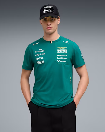 Why just watch the race when you can be part of it? The PUMA x ASTON MARTIN ARAMCO F1® TEAM Replica Collection combines the iconic Aston Martin Green with lime accents, bringing race day energy to your every day. This is the official 2026 Team Replica Tee, as seen worn throughout the racing season. Because behind every lap is a team – and now, you’re part of it.