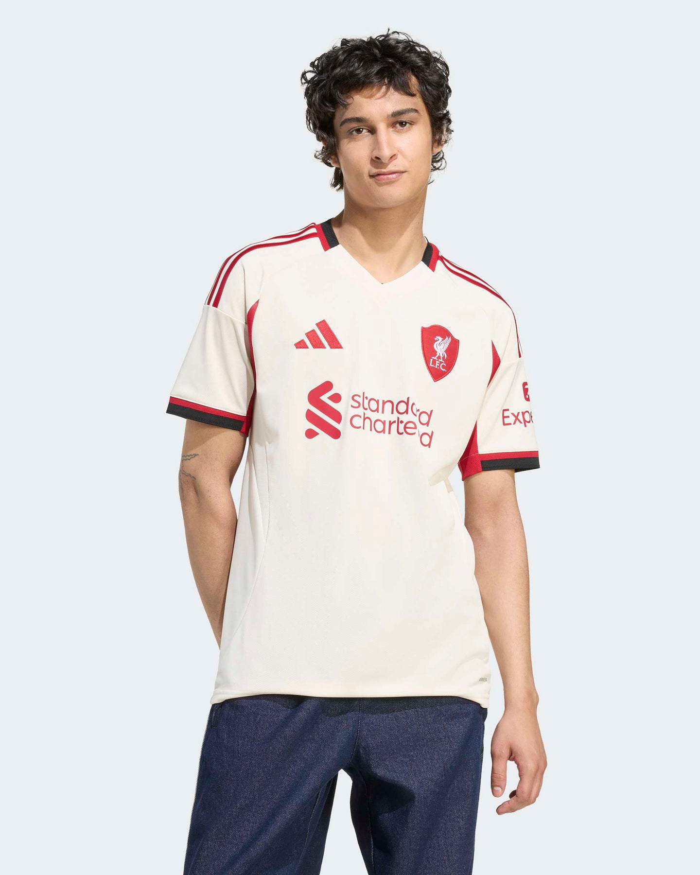 In the 25/26 season, everywhere is Anfield. Created to represent Liverpool FC's iconic home ground on away days, this adidas football jersey displays a specially made crest whose shape was inspired by the arched gable atop the stadium's old Main Stand. Moisture-managing AEROREADY and soft fabric combine to keep travelling fans comfortable. The off-white shade will be familiar to Reds who know their history.