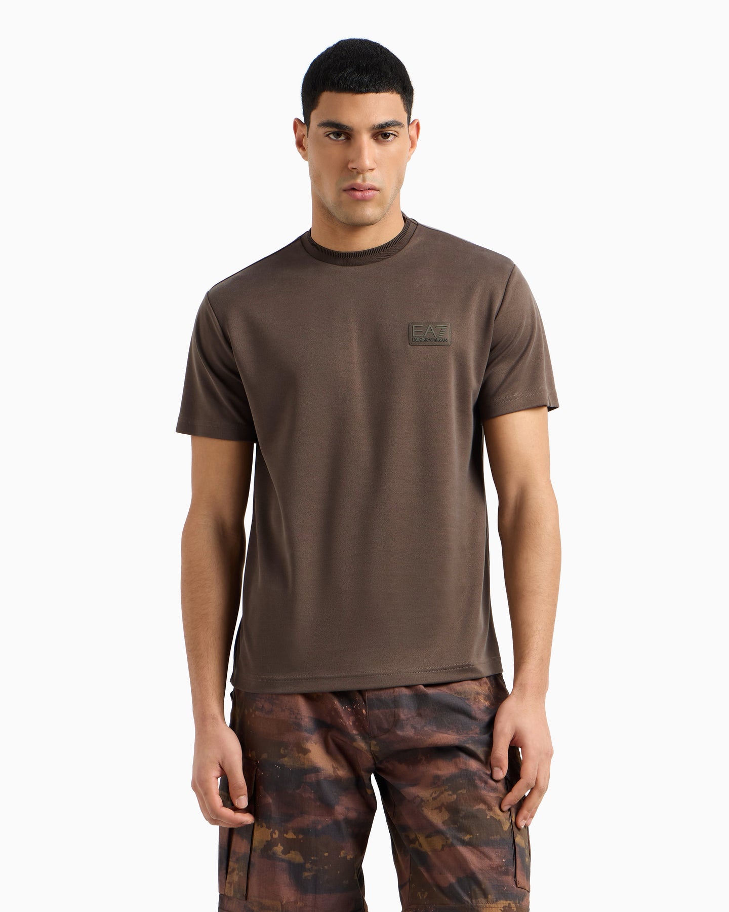 Short-sleeved, slim-fit crew-neck T-shirt made from a modal-blend piqué, customised with a matching EA7 logo on the chest. A style that is always up-to-date, the hallmark of the brand’s athletic yet refined spirit, suitable both for sports and for completing looks with a relaxed, casual style.