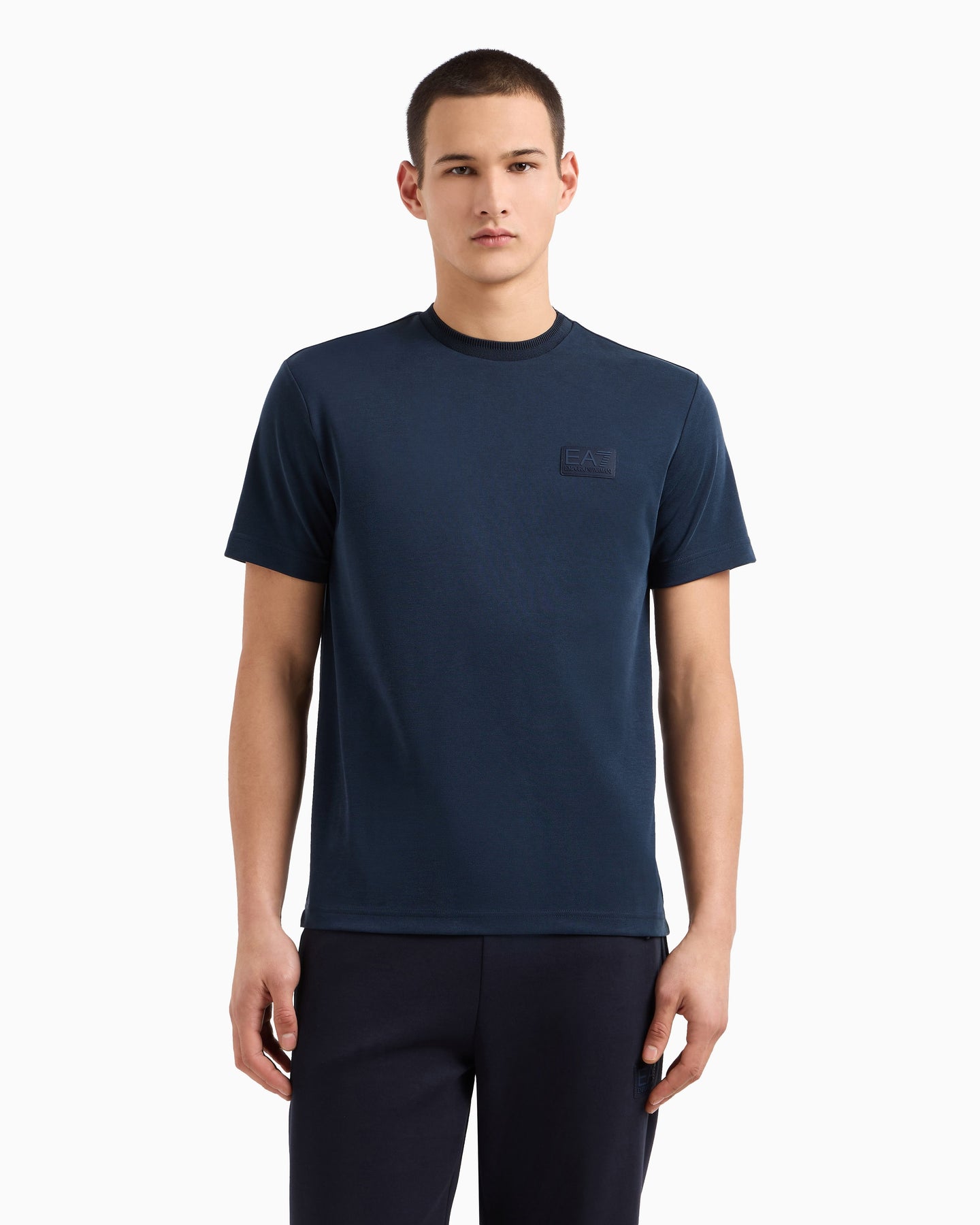 Short-sleeved, slim-fit crew-neck T-shirt made from a modal-blend piqué, customised with a matching EA7 logo on the chest. A style that is always up-to-date, the hallmark of the brand’s athletic yet refined spirit, suitable both for sports and for completing looks with a relaxed, casual style.