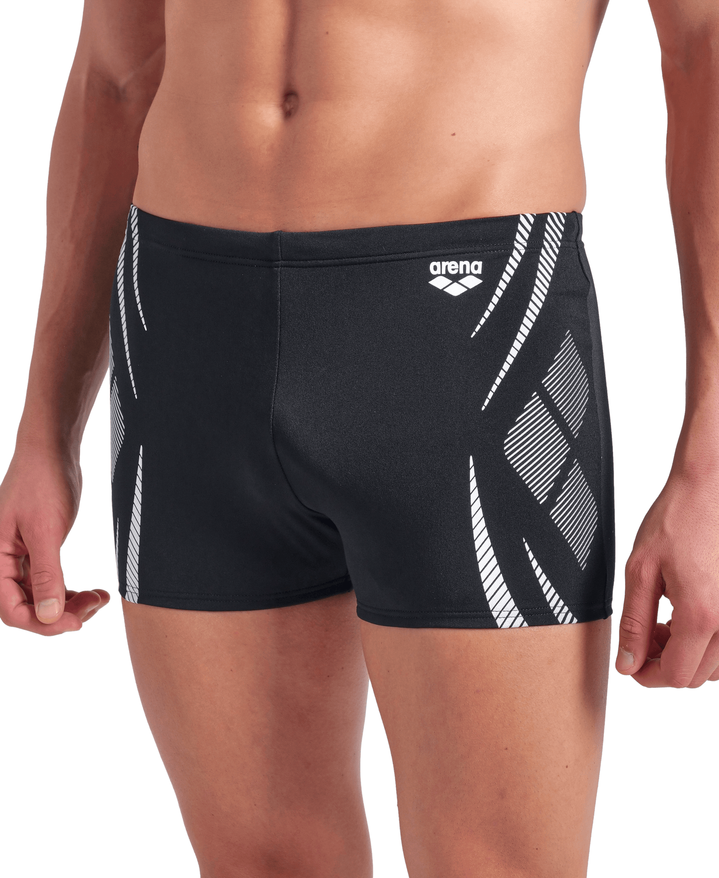 MEN'S ARENA POSEIDONIA SWIM SHORT BLACK-WHITE is a stylish and hydrodynamic swim shorts designed for training and competition. It has a streamlined fit that reduces water resistance and provides optimal freedom of movement.