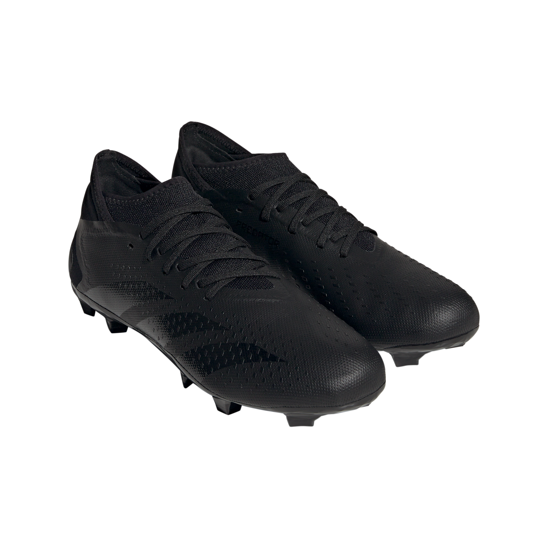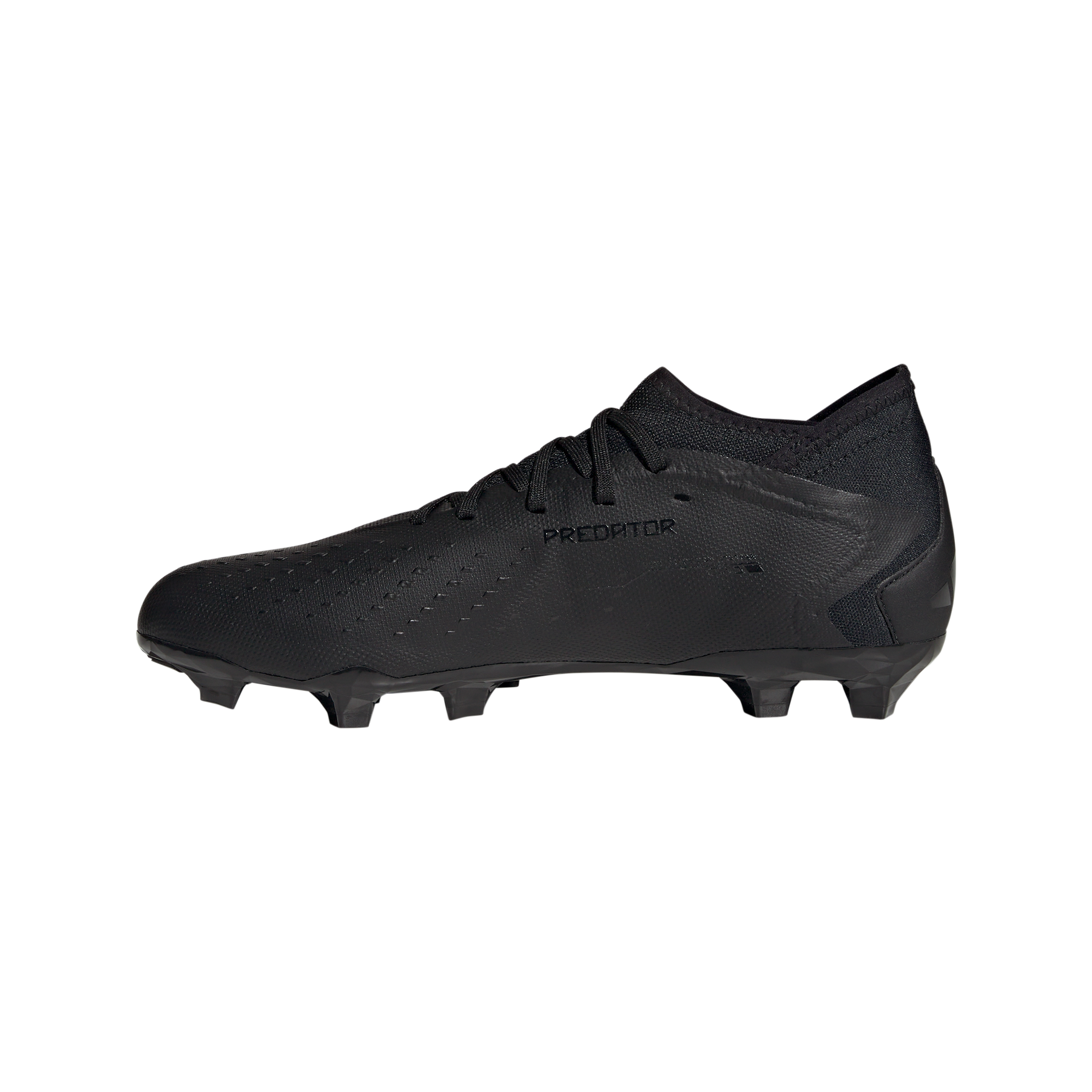 Control + accuracy = confidence. When the goal's in your sights, target perfection with adidas Predator Accuracy. The soft, coated textile upper on these soccer cleats includes High Definition Texture across its strike zone. A mixture of debossed elements and raised print, it's there to help you nail every pass and shot. Underneath, a specialist outsole keeps you in boss mode on firm ground.