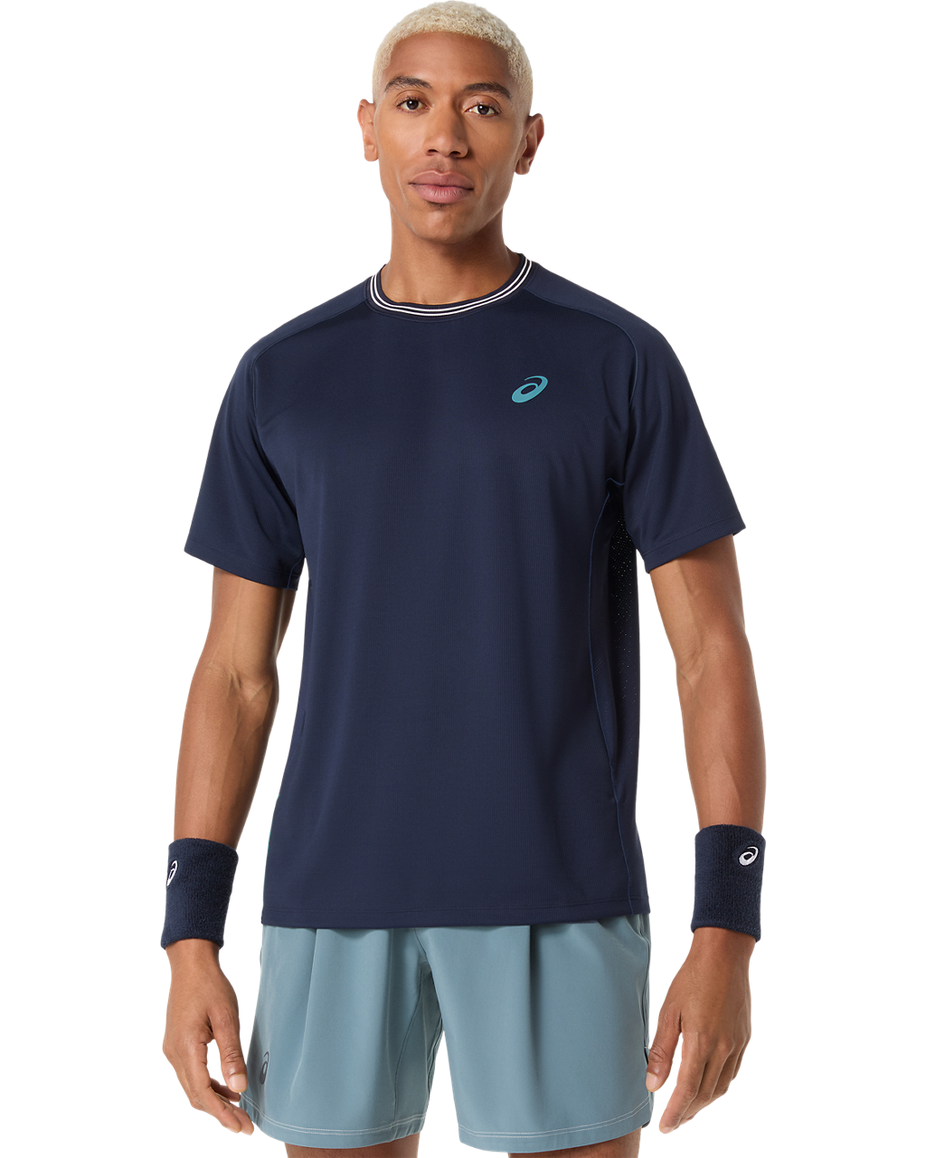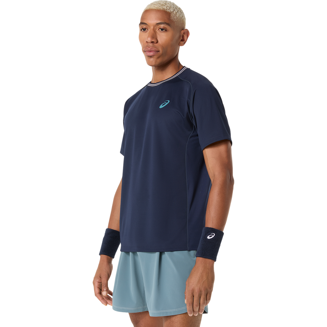 A back mesh panel helps enhance airflow, keeping you dry and comfortable. The shirt also has a striped ribbed neckline for a classic tennis look that's versatile for the court and clubhouse.