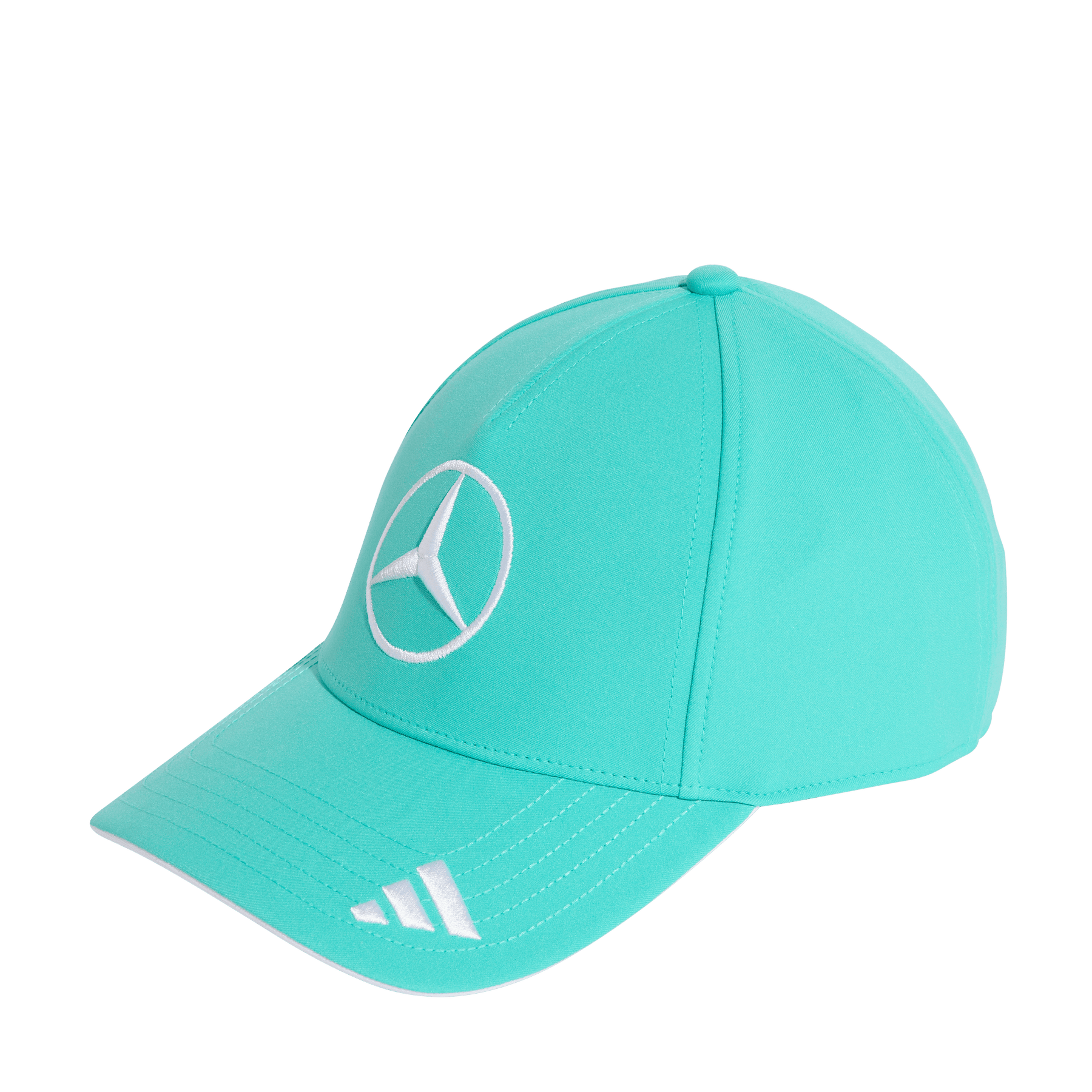 The medium curved visor and brim add a contemporary touch to the classic shape, while the iconic Mercedes star is proudly displayed on the front panels.