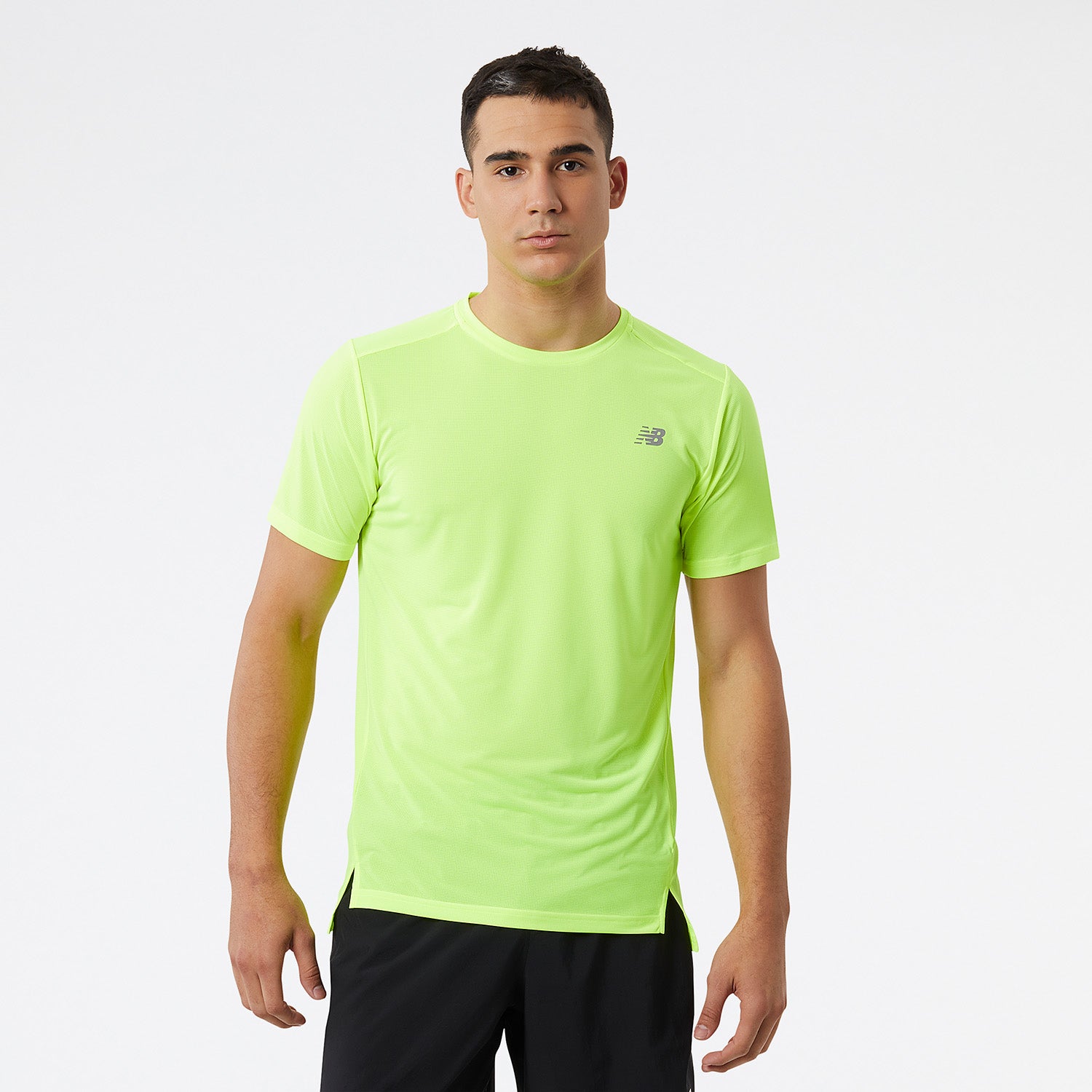 The New Balance Accelerate Pacer T-Shirt for men is a comfortable short-sleeved running shirt. The t-shirt features New Balance' Dry technology that effectively wicks away moisture. This allows you to run dry and comfortably. Reflective details make it possible to run visibly even in the dark.