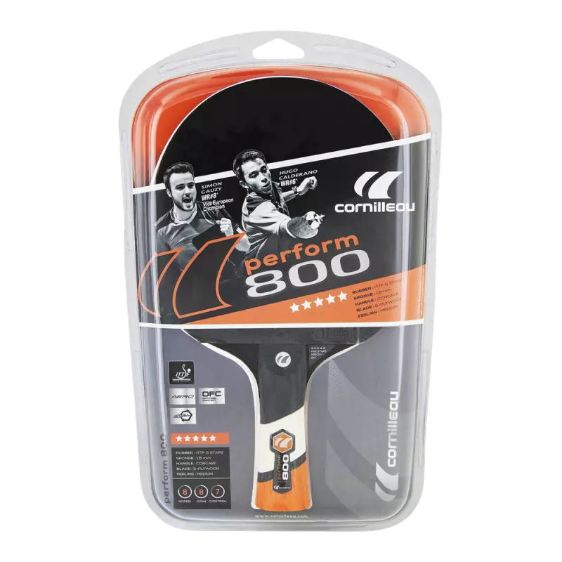 Thanks to its DYNACELL sponge and dynamic blade, the Perform 800 racket is a reference for OFF players in the table tennis world. The AERO and OFC technologies provide ball control and good contact, while the powerful grip offered by its rubbers ensures consistent trajectories and spin on each and every shot.