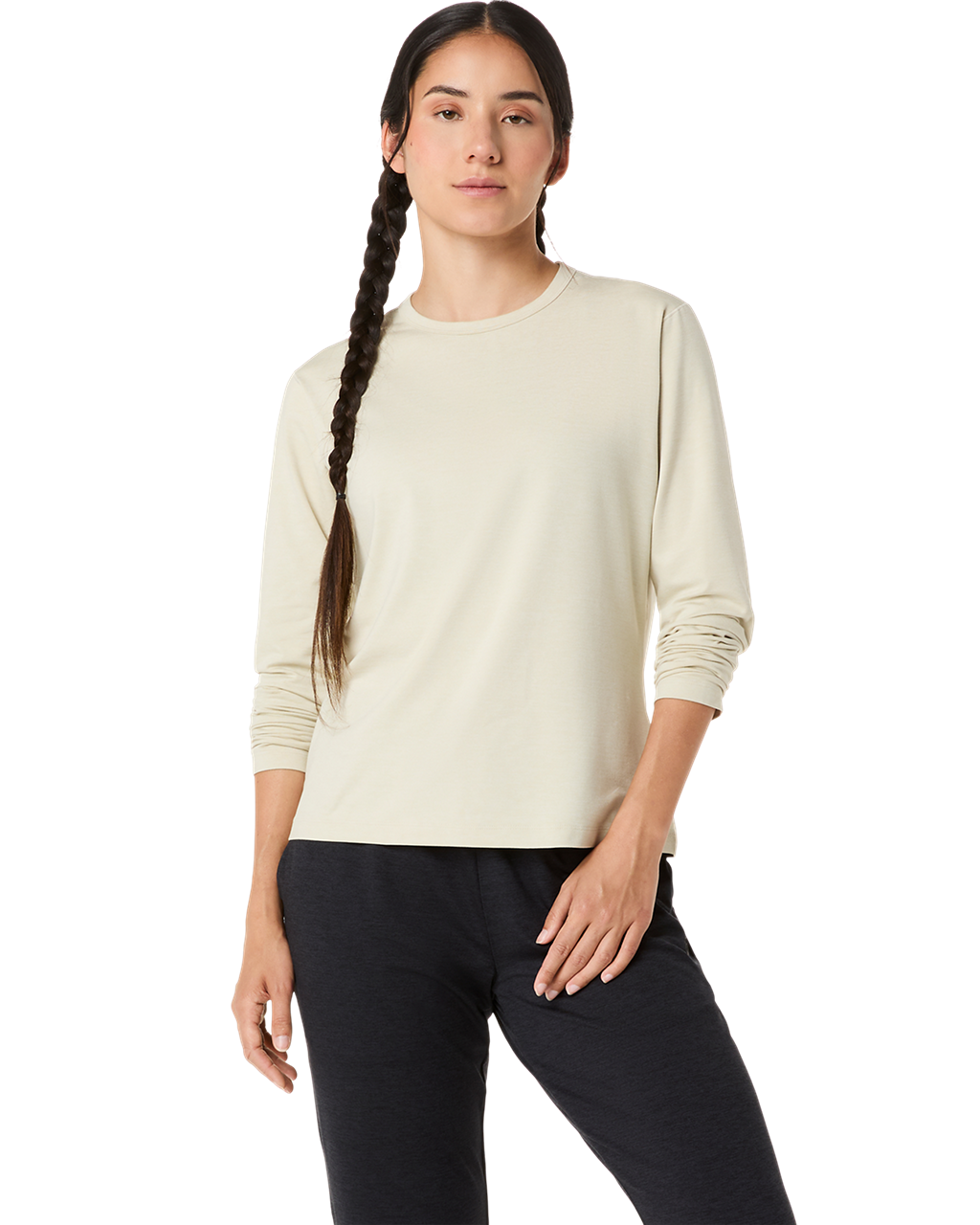 The REFINED TEXTURE LONG SLEEVE TOP will be your go-to top for various activities. It features a soft stretch fabric with a smooth peaching finish that makes it a comfortable choice for daily wear. This quick-drying top also implements an active seam design and soft yarn construction that helps reduce chafing against your skin.