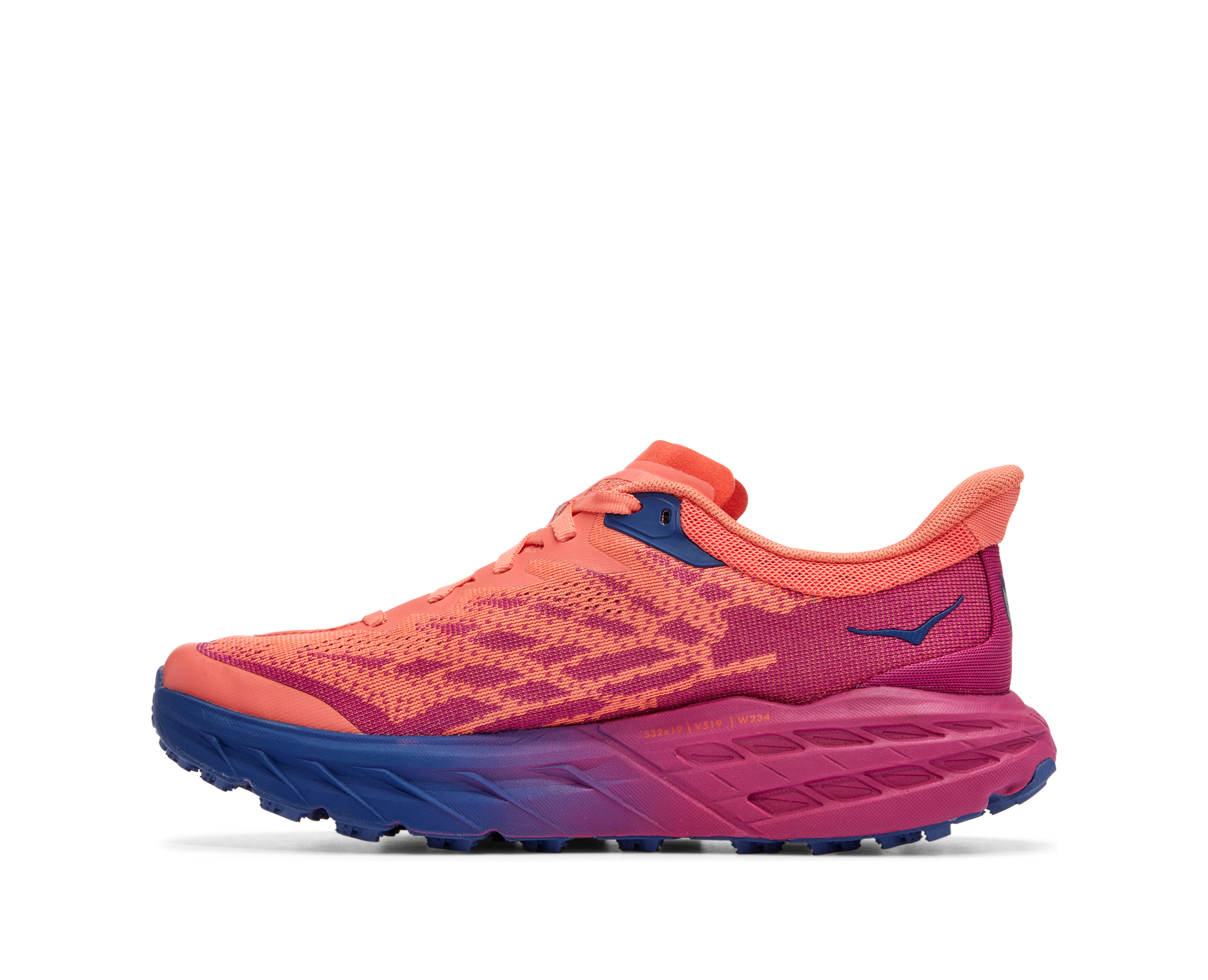 A workhorse designed for technical trails, the Speedgoat returns with less weight and more traction than ever before. A new shoe from outsole to laces, this trail beast is updated with Vibram® Megagrip with Traction Lug for enhanced grip on loose soil. Retaining the same stack height and rocker profile, the Speedgoat 5 employs a lighter midsole compound and heartier, double layer jacquard mesh to inspire confidence on any terrain.