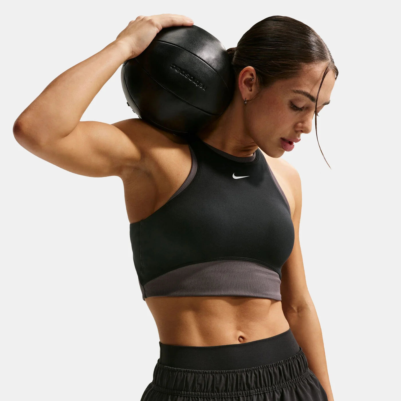 The Nike Women’s One Medium-Support Padded Training Sports Bra is crafted from peachy-soft Dri-FIT fabric with a ribbed lining, classic racerback design, and removable pads for versatile support.