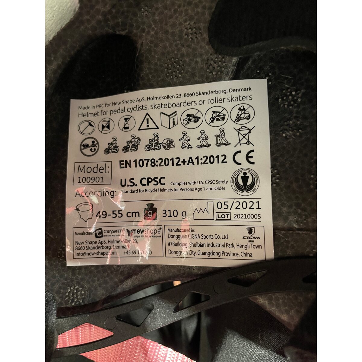 - Material: In-mold polycarbonate and protective EPS foam