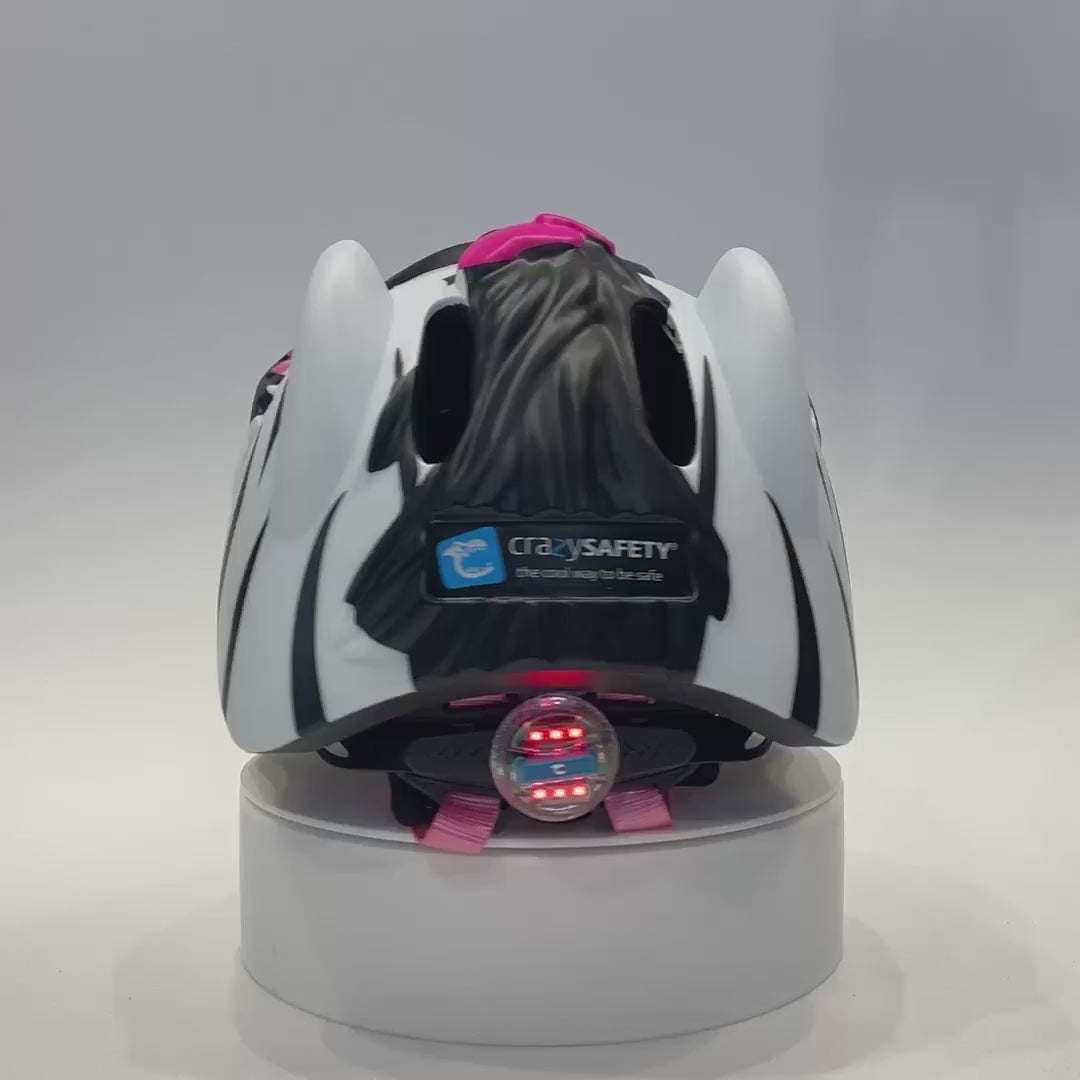 Our zebra bike helmet complies with the EN 1078:2012 + A1:2012 safety standard and has a lightweight design with 6 ventilation holes to ensure maximum comfort. For extra safety, there is a built-in red LED light at the back of the helmet. The perfect kids’ bike helmet because it combines style, comfort, and safety in the best way.